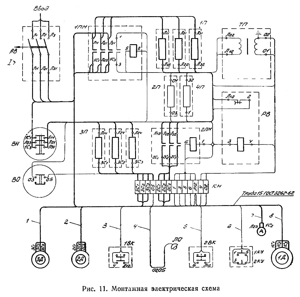 Монтажная схема токарно-гвинторізного верстата 1А625