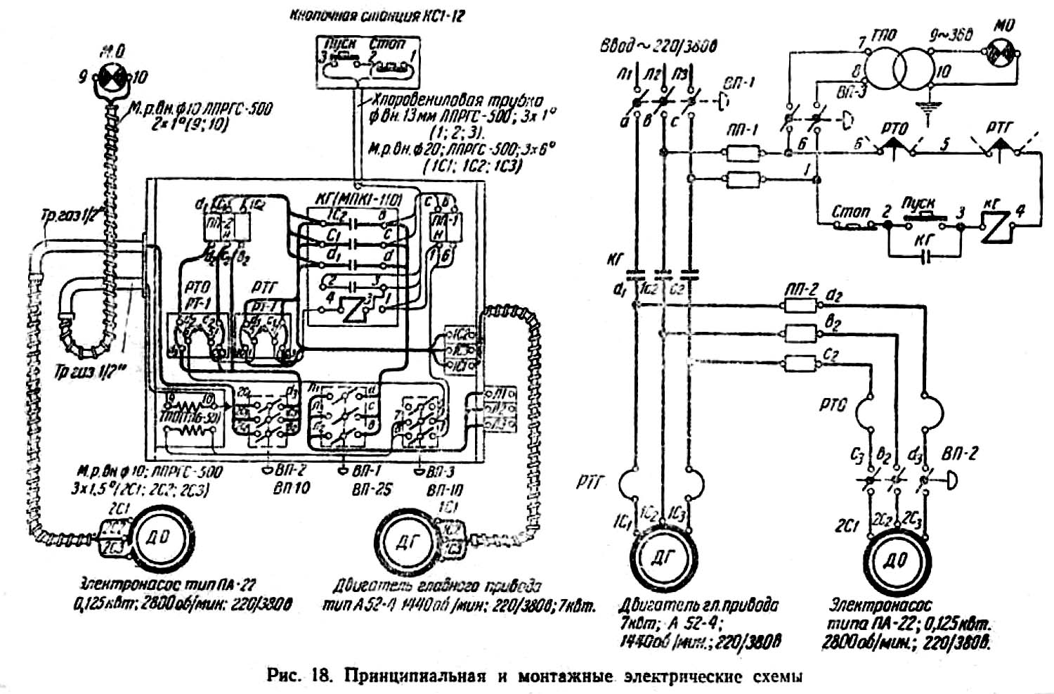 Останов головного електродвигуна осуществляется нажатием кнопки «Стоп», которая размыкает ланцюг катушки пускателя КГ* (3—4), вследствие чего сердечник якоря отпадает, размыкая нем контакты пускателя.