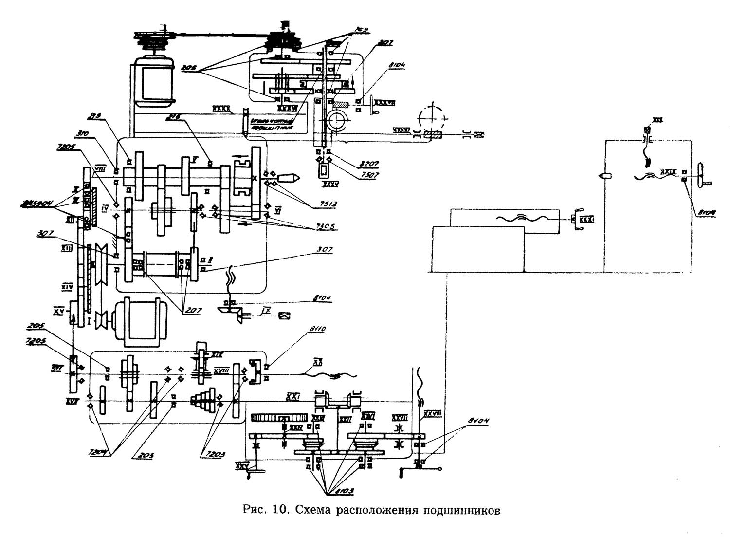 Схема розташування підшипників верстата 1А95. Дивитись у збільшеному масштабі