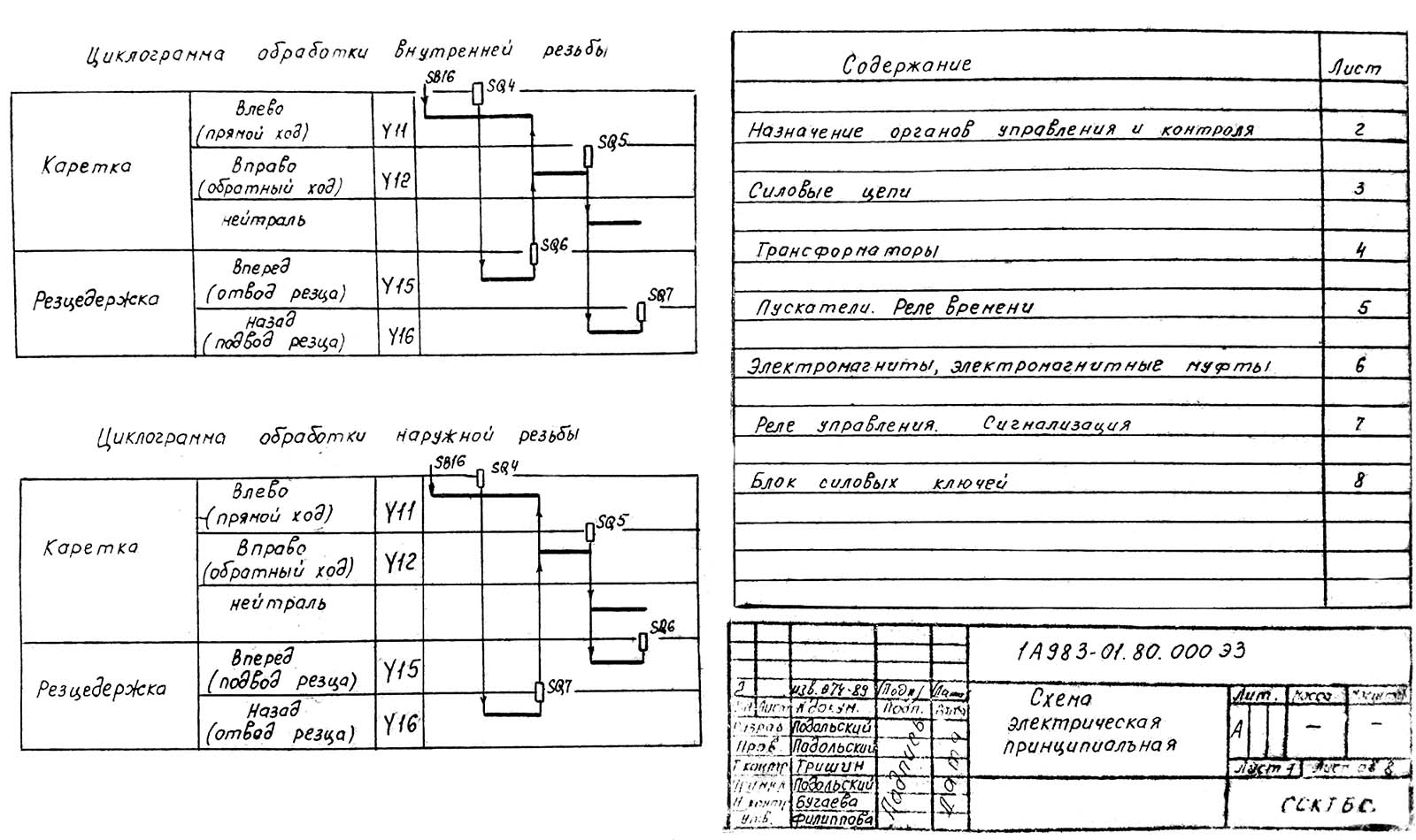 Циклограмма обробки різьби трубонарізного верстата 1А983