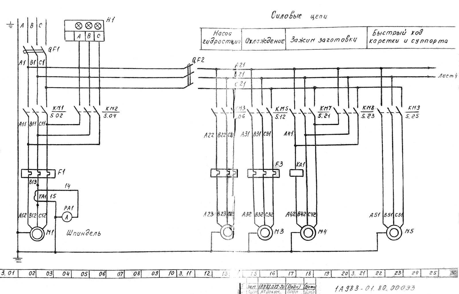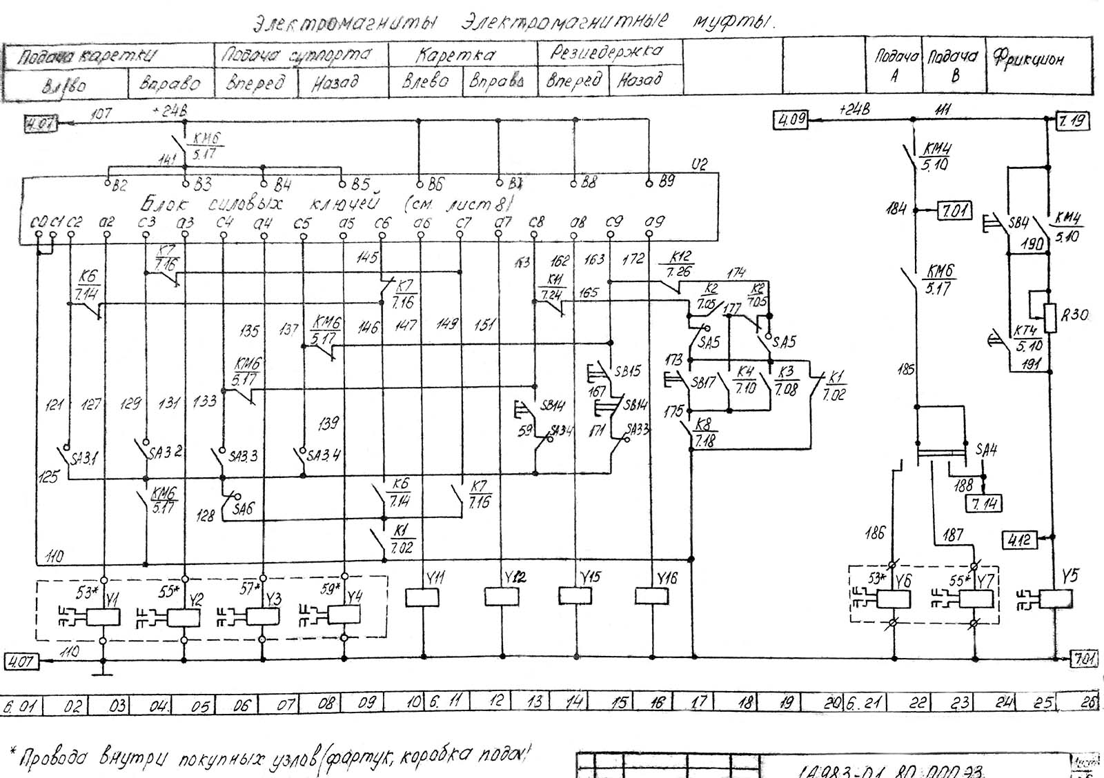 Схема блока силових ключів трубонарізного верстата 1А983. Дивитись у збільшеному масштабі