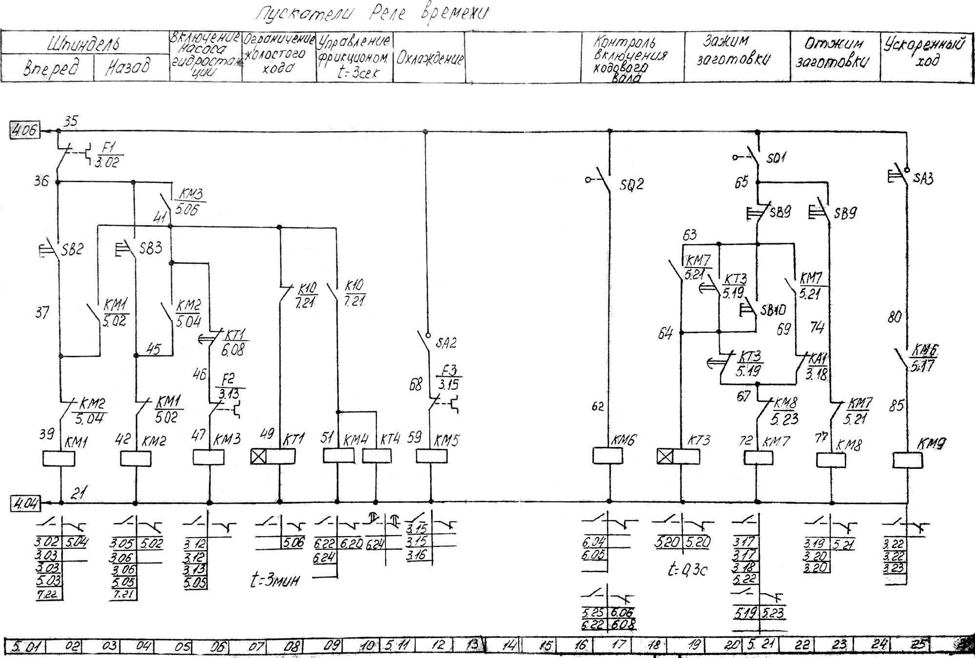 Схема пускачів і реле часу трубонарізного верстата 1А983