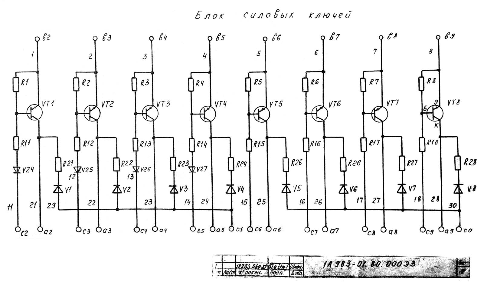 Схема блоку силових ключів трубонарізного верстата 1А983