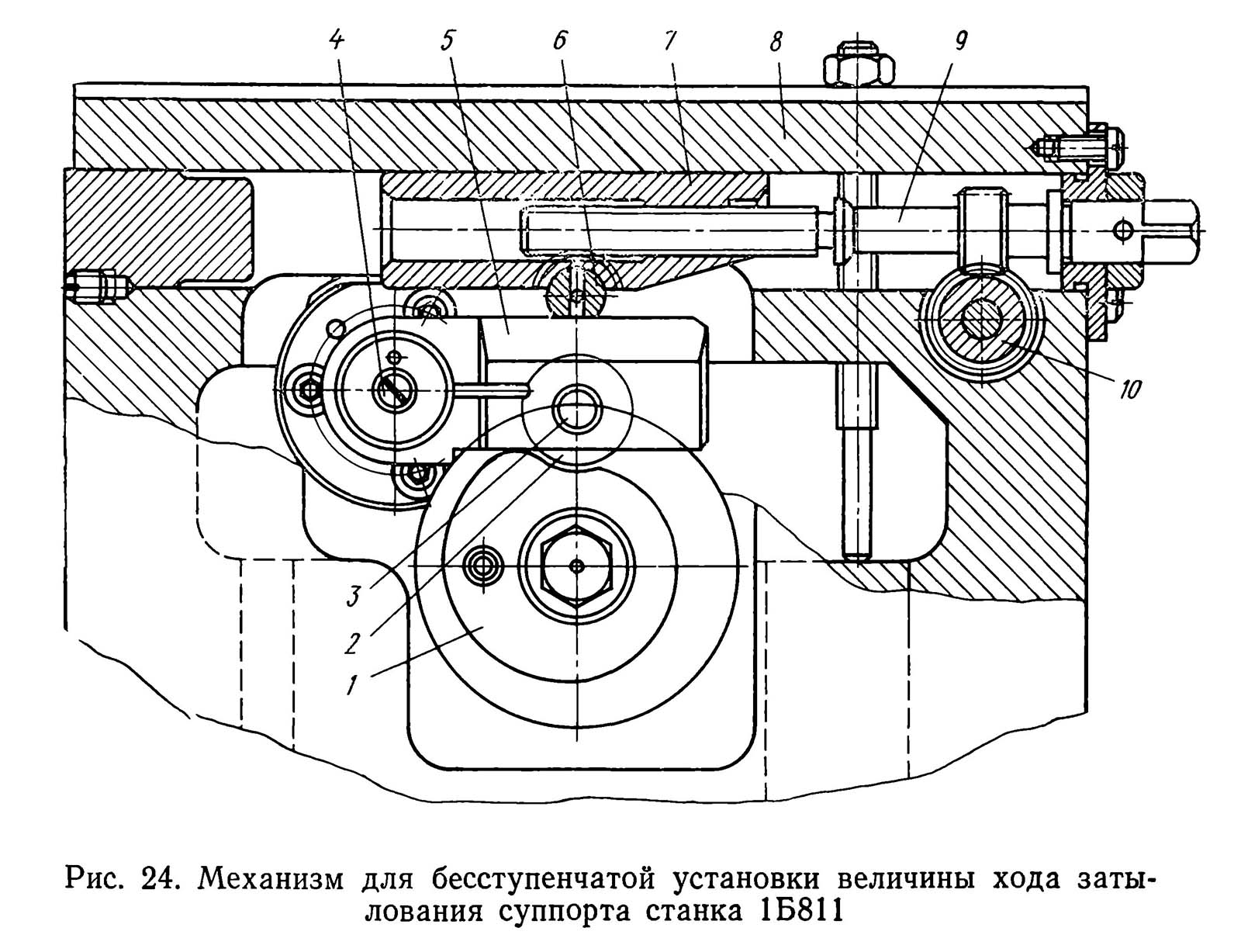 Механізм суппорта для установки ходу затилочних верстата 1Б811. Дивитись у збільшеному масштабі