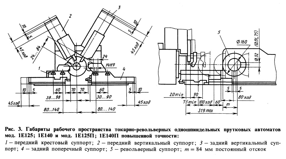 Габарит робочого верстата 1Е140, 1Е125. Дивитись у збільшеному масштабі