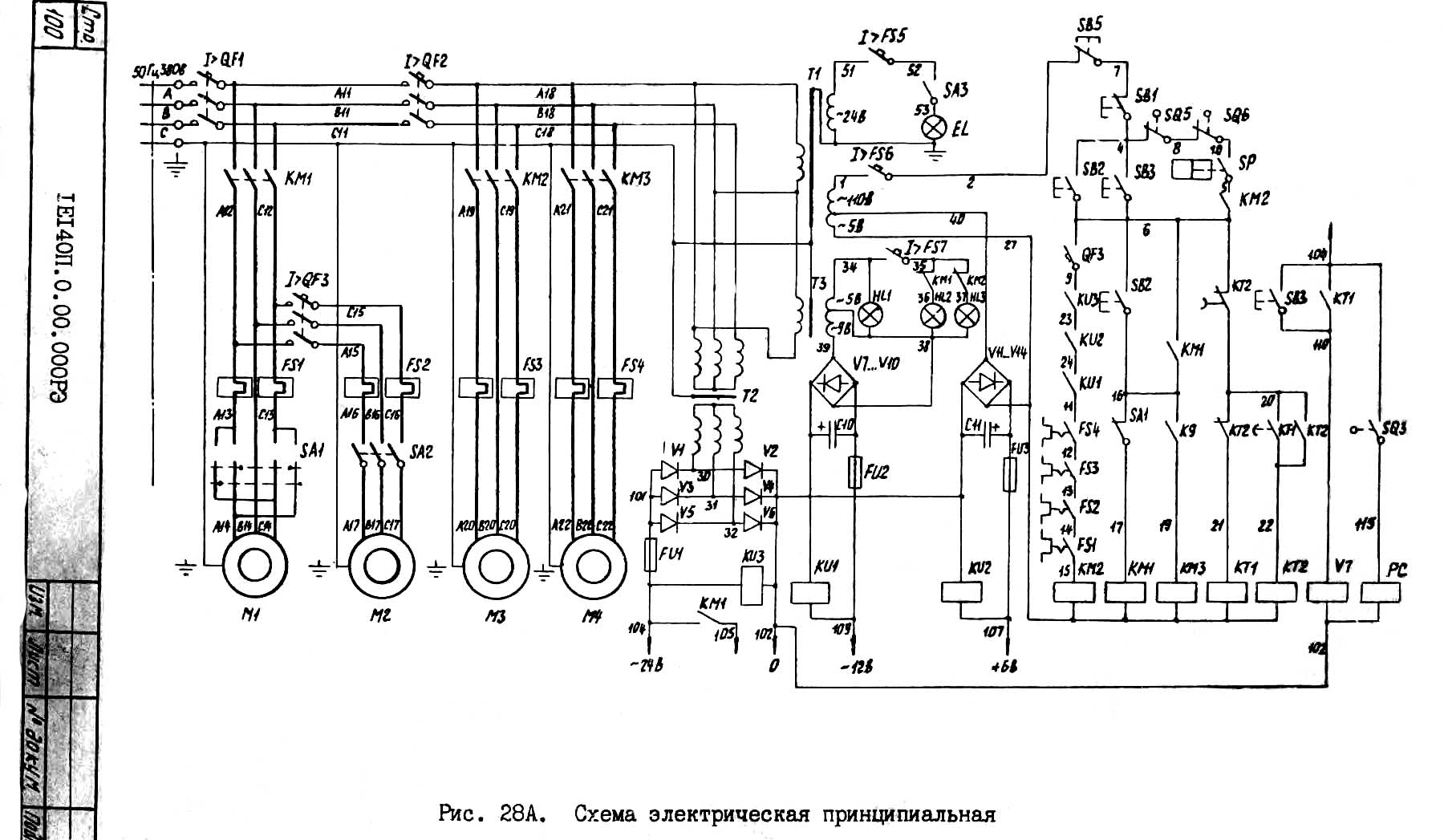 Перемикачами S17... S24 - включається реле К9, магнітний пускач К3 та двигун приводу додаткових пристроїв М4.