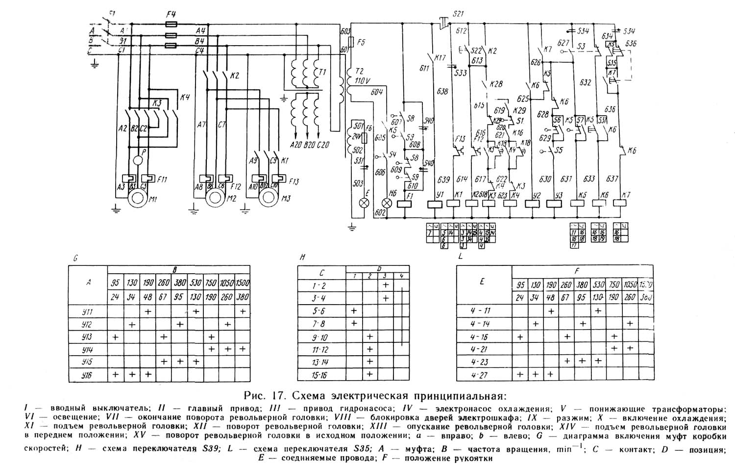Принципові електричні схеми верстата показано на рис. 17 та 18, таблиці 1...7