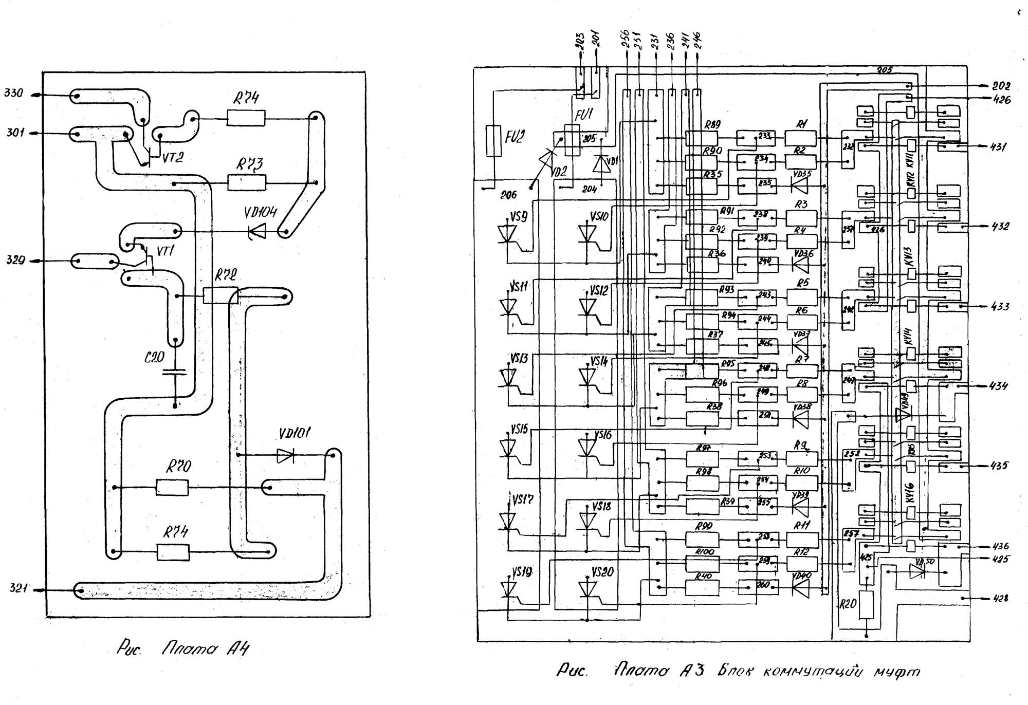 Комутація муфт коробки швидкостей здійснюється тиристорами VS9...VS20 (плата А4).