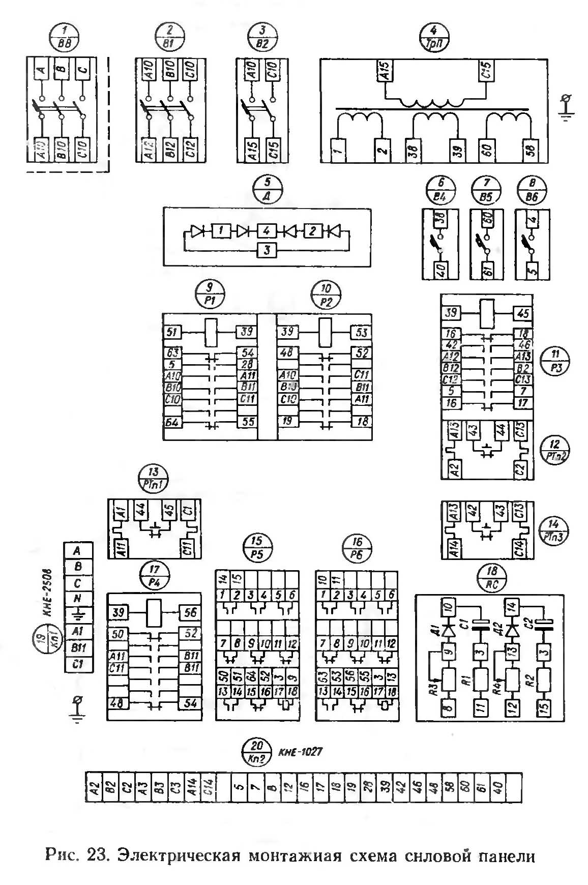 Задержка часу срабатывания реле Р5 і Р6 достигается цепями R3, С1 (зона 23, 24) і R4, С2 (зона 26, 27).
