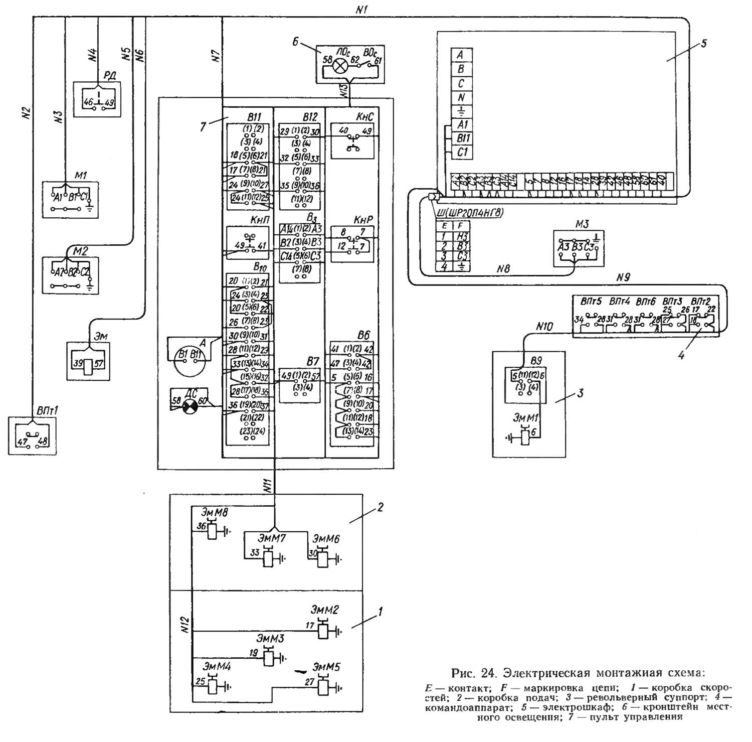 Монтажная схема токарно-револьверного верстата 1к341