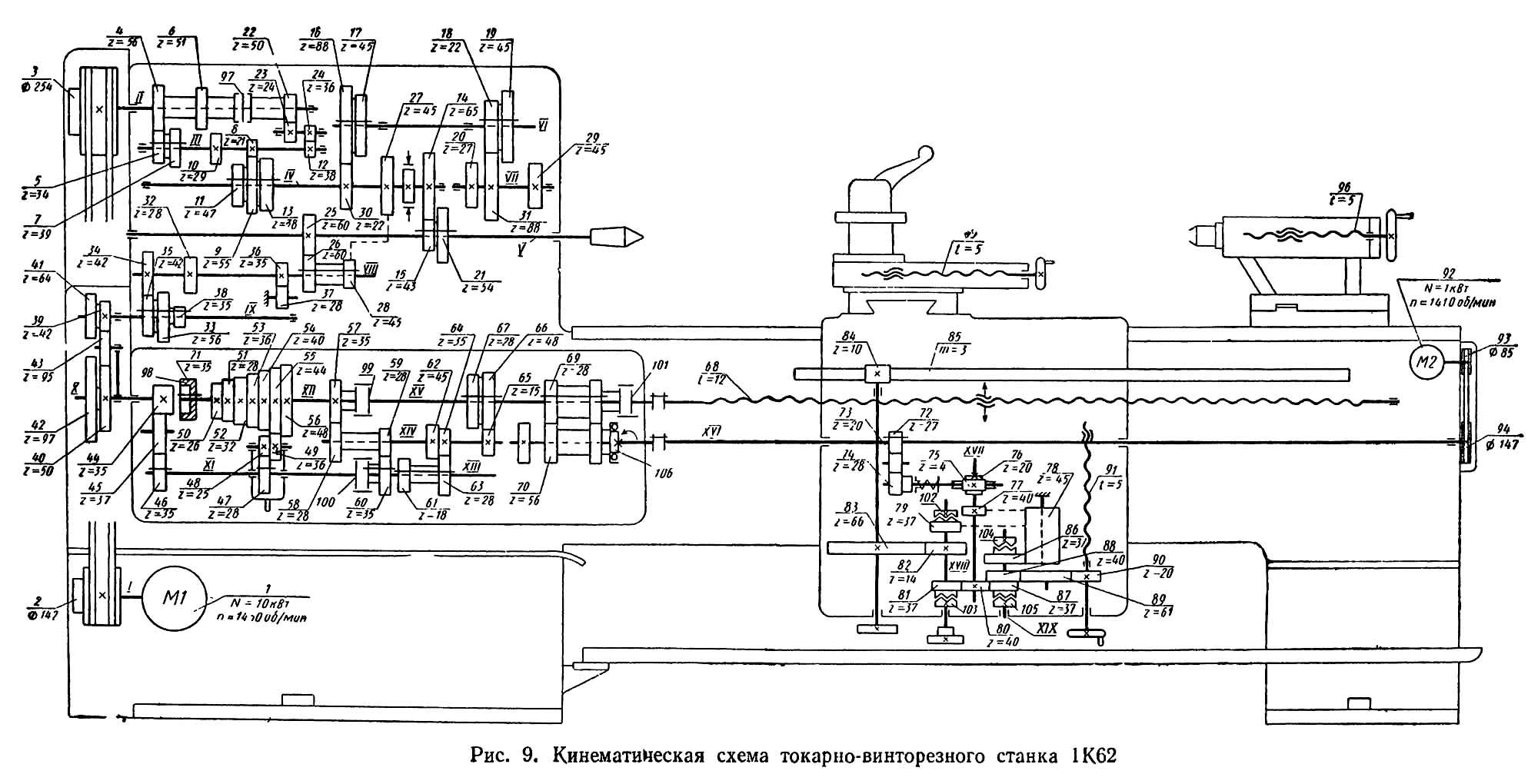 Кінематична схема токарно-гвинторізного верстата 1к625