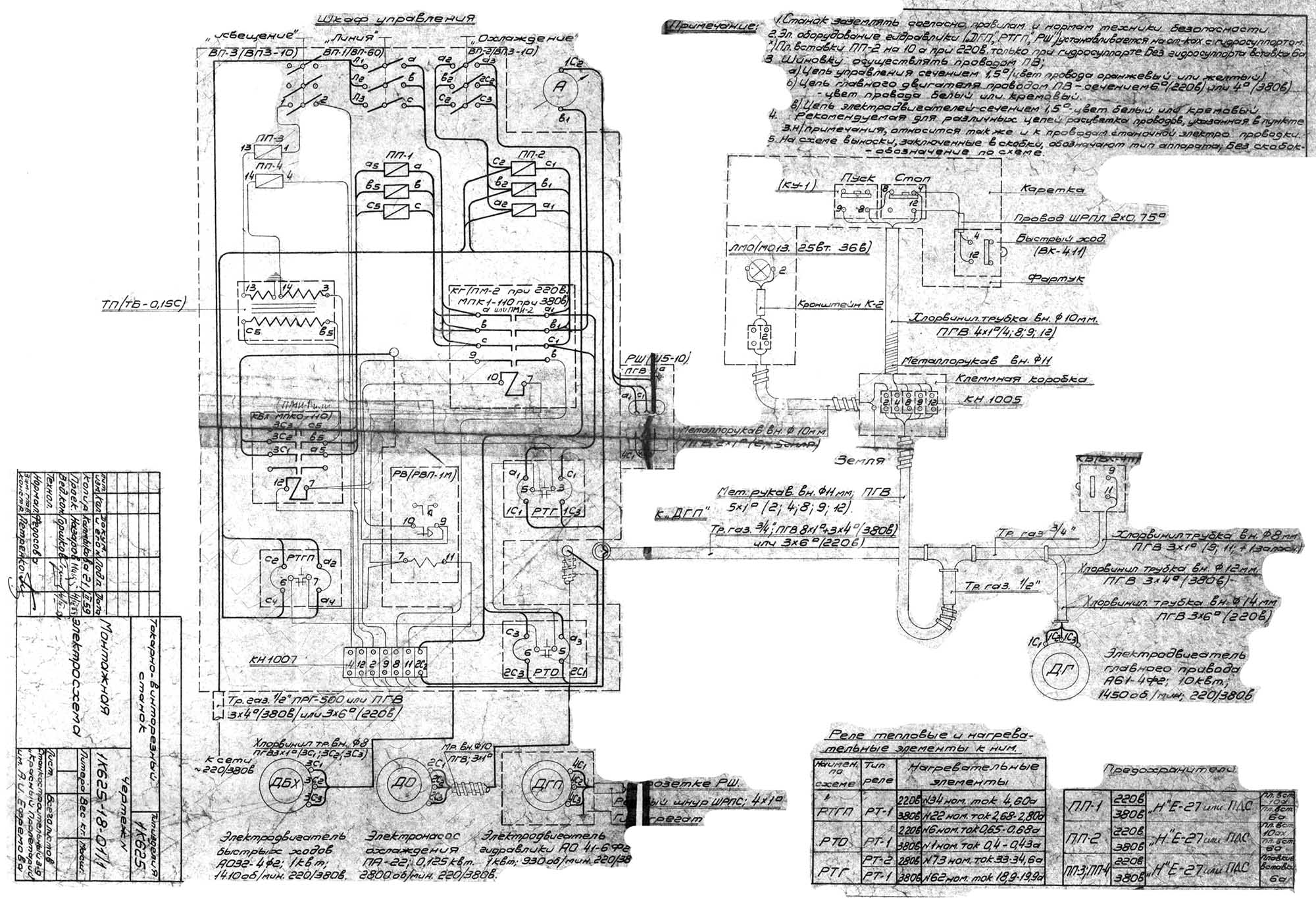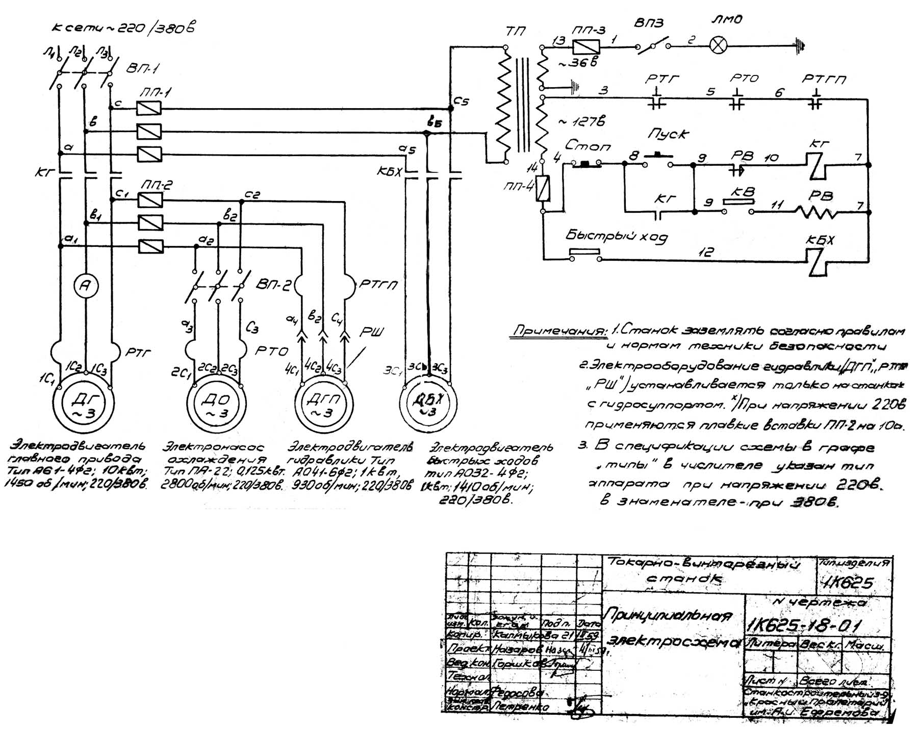 Електрична схема токарно-гвинторізного верстата 1К625. Дивитись у збільшеному масштабі