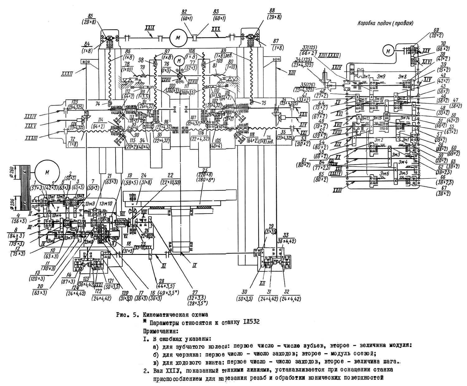 Схема кінематична токарно-карусельного верстата 1Л532. Дивитись у збільшеному масштабі