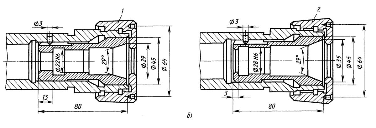 Приєднувальні розміри затискного вузла верстата 1М116, 1М110