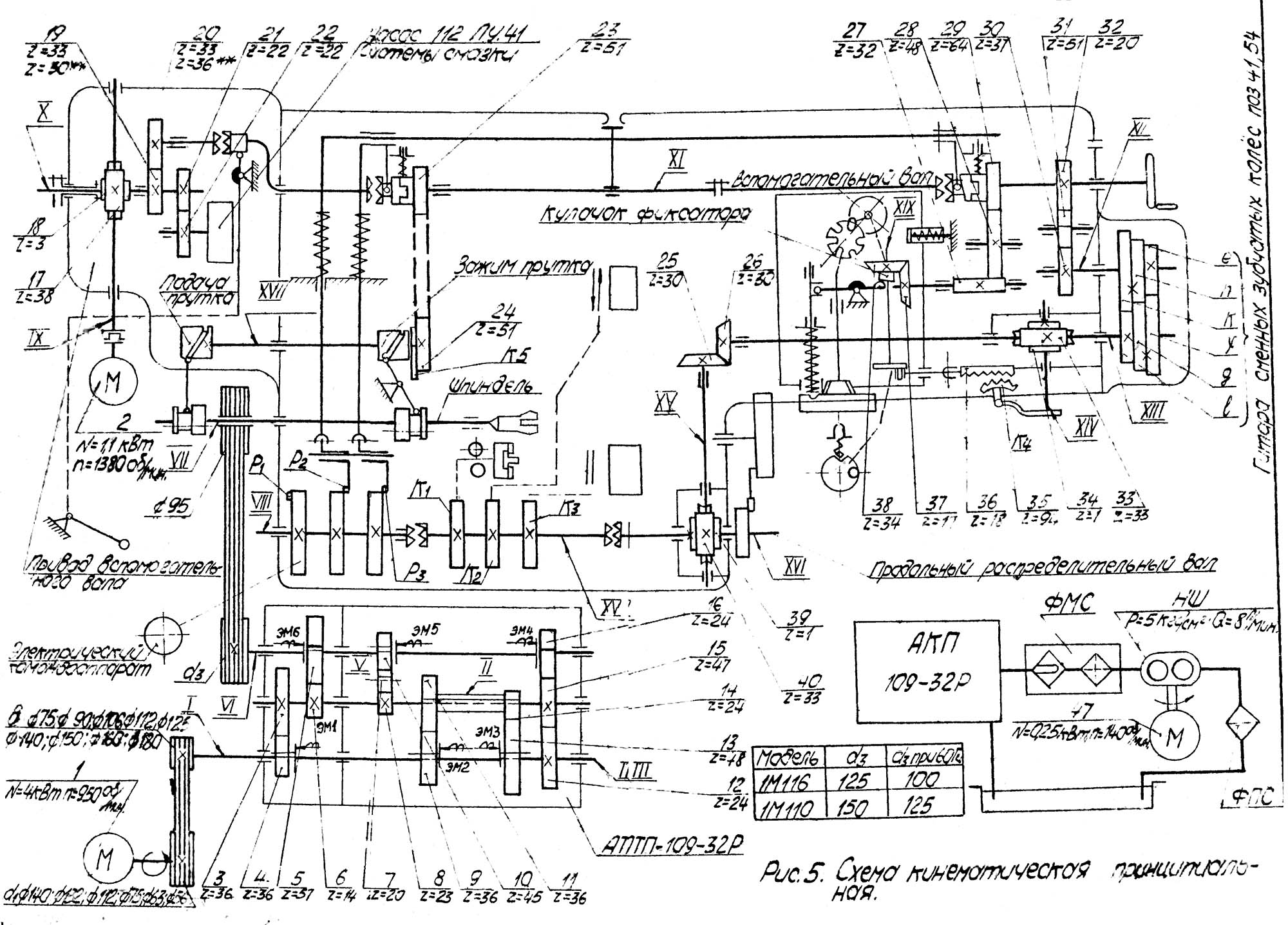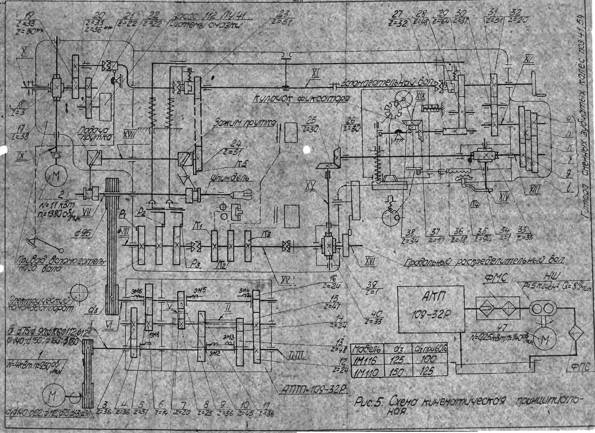 1. Кінематична схема токарно-револьверного верстата 1М116, 1М110. Дивитись у збільшеному масштабі