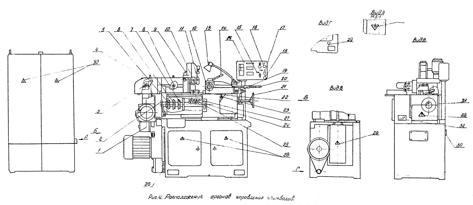 Розташування органів керування револьверним верстатом 1М116. Дивитись у збільшеному масштабі