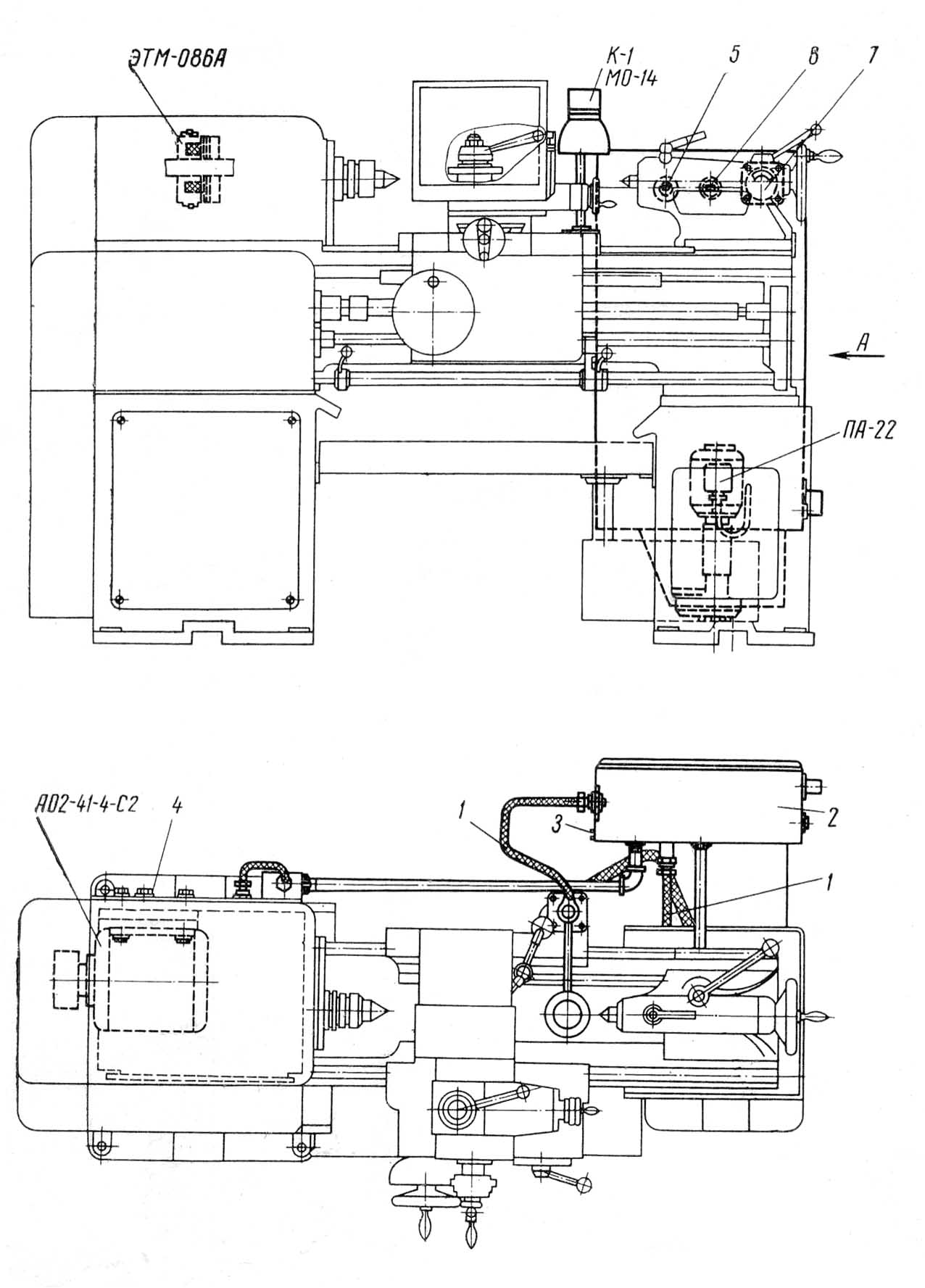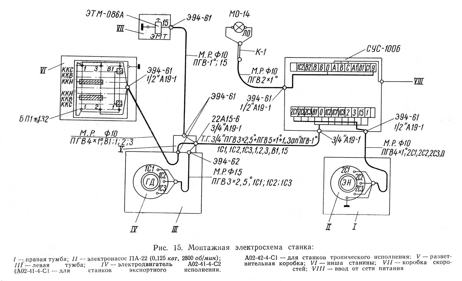 Монтажные електросхеми приведены на рис. 15 і 16, расположение електроапаратури на станке — на рис. 17.