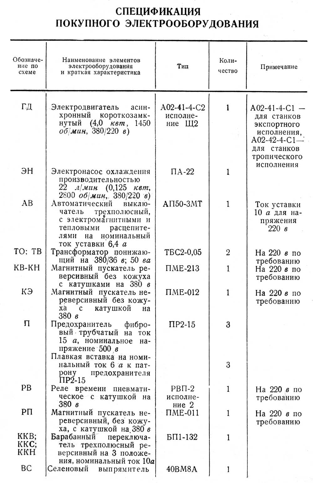 Електроустаткування верстата размещено в специальном шкафу, в двух тумбах і в отдельной коробке, установленной з правой стороны кронштейна ходового гвинта.