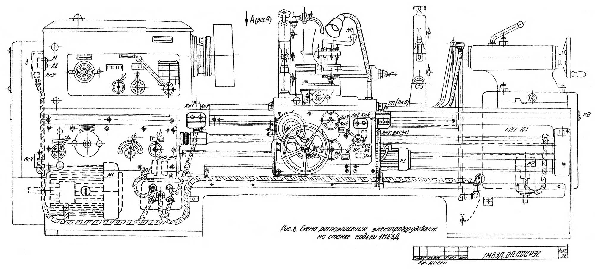 Схема рамещения електроустаткування токарно-гвинторізного верстата 1М63Д