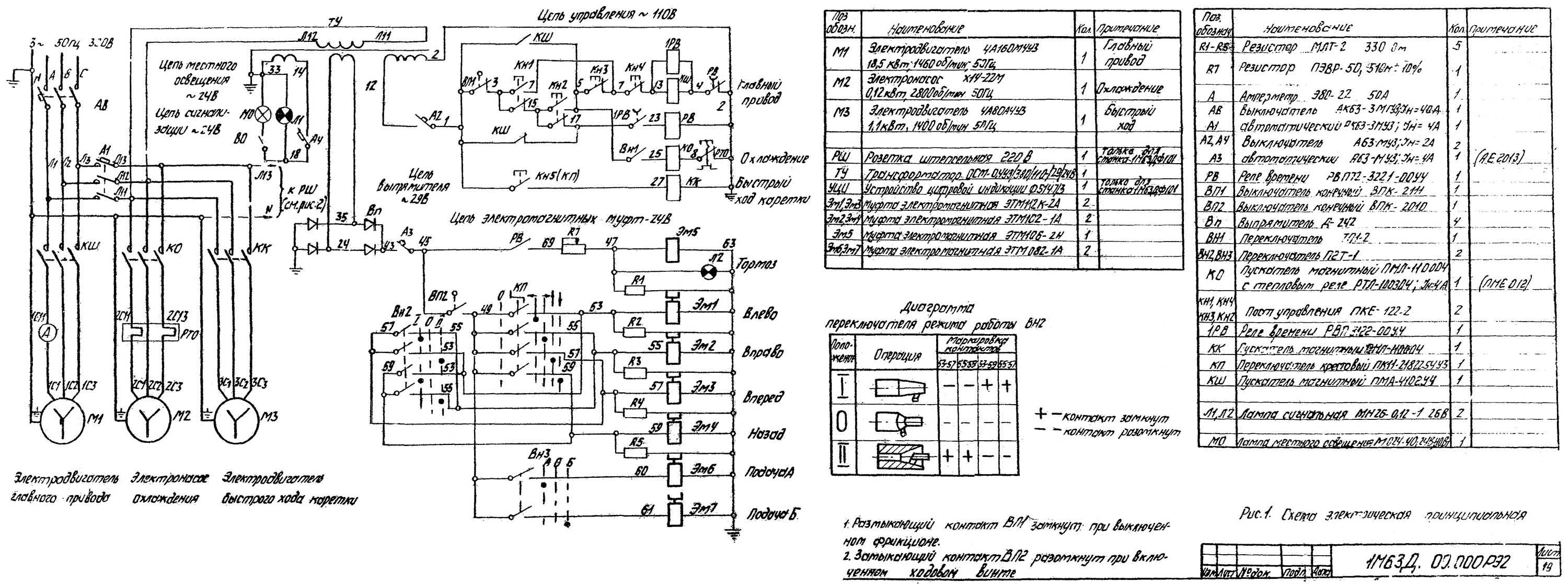 Електрична схема токарно-гвинторізного верстата 1М63Д