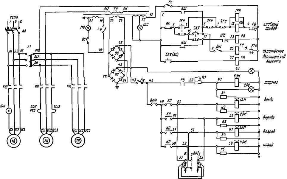 Електрична схема токарно-гвинторізного верстата 1м63ф101
