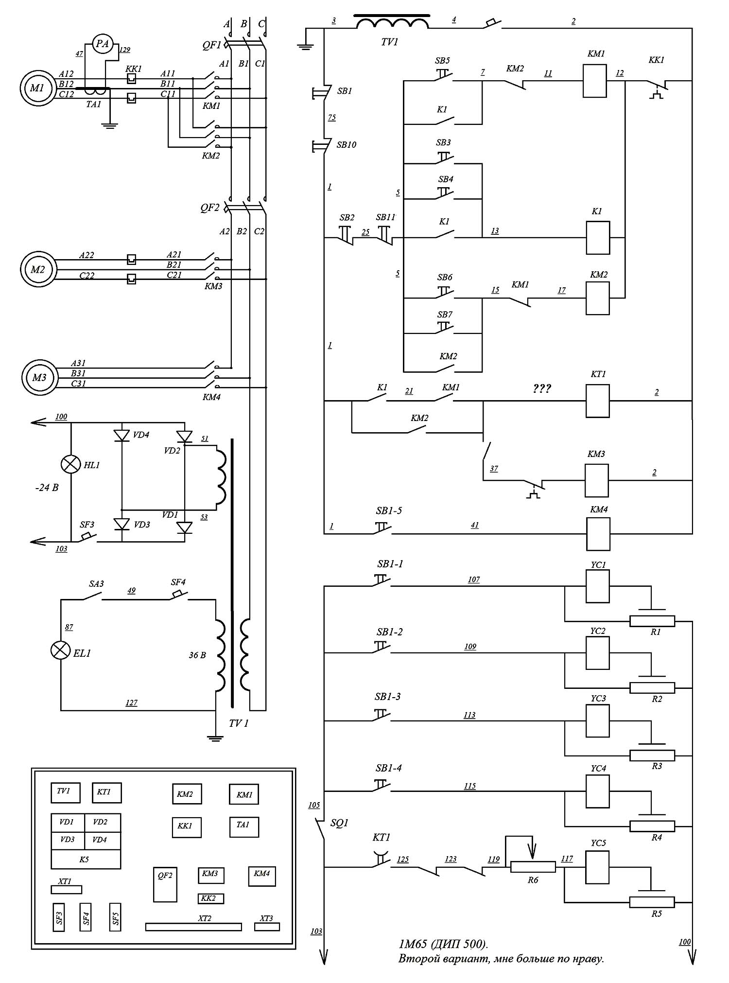 2. Вариант. Електрична схема токарно-гвинторізного верстата 1М65. Скачать в увеличенном масштабе
