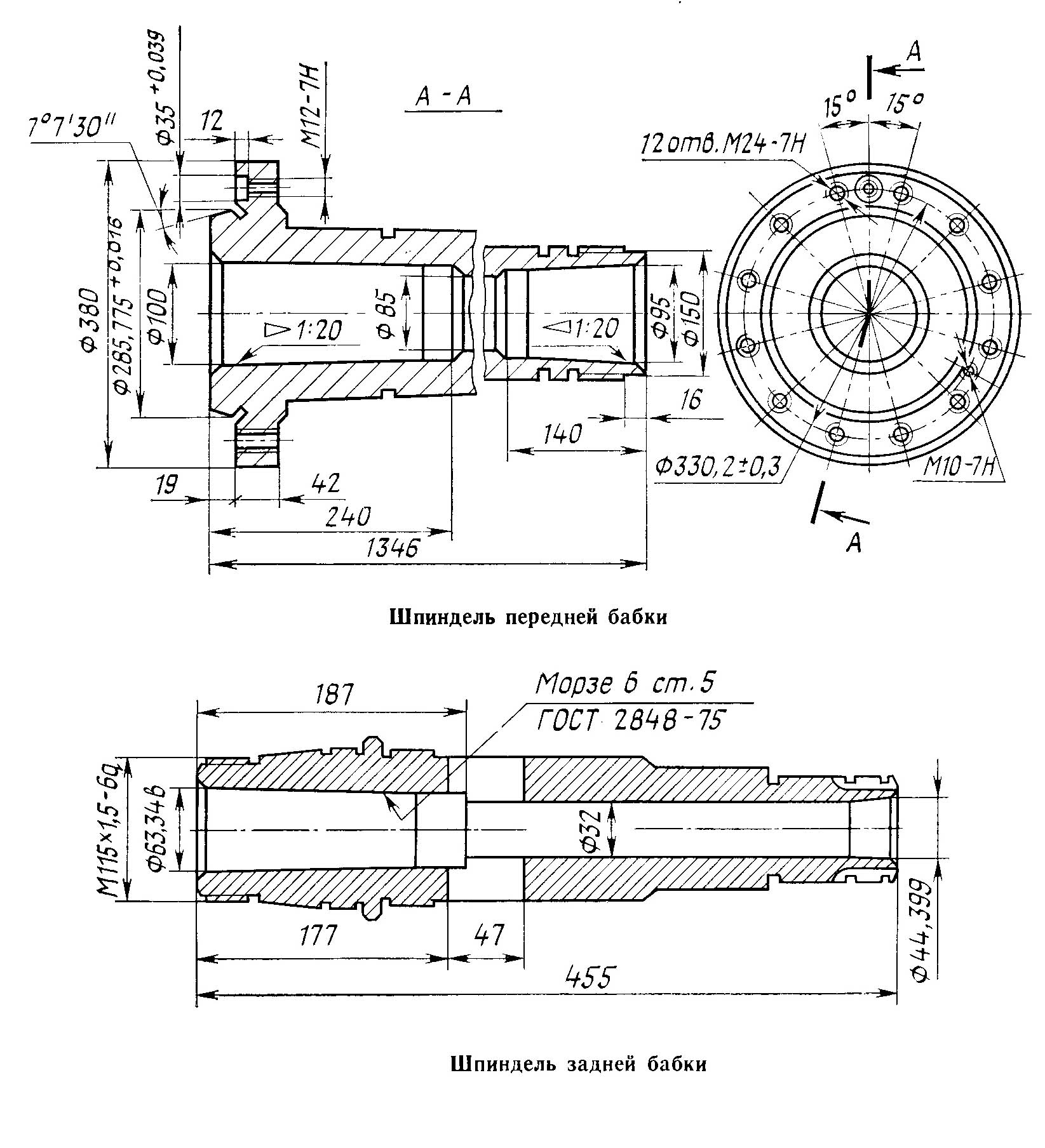 Шпиндель смонтирован на трех опорах качения, из которых передняя і задня регулируемые.