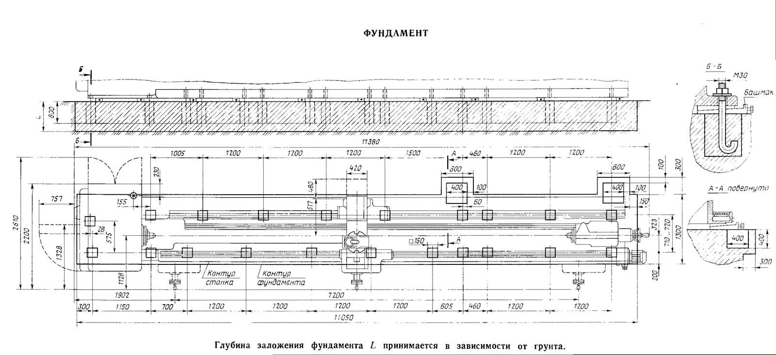 Фундамент токарно-гвинторізного верстата 1М658. Скачать в увеличенном масштабе