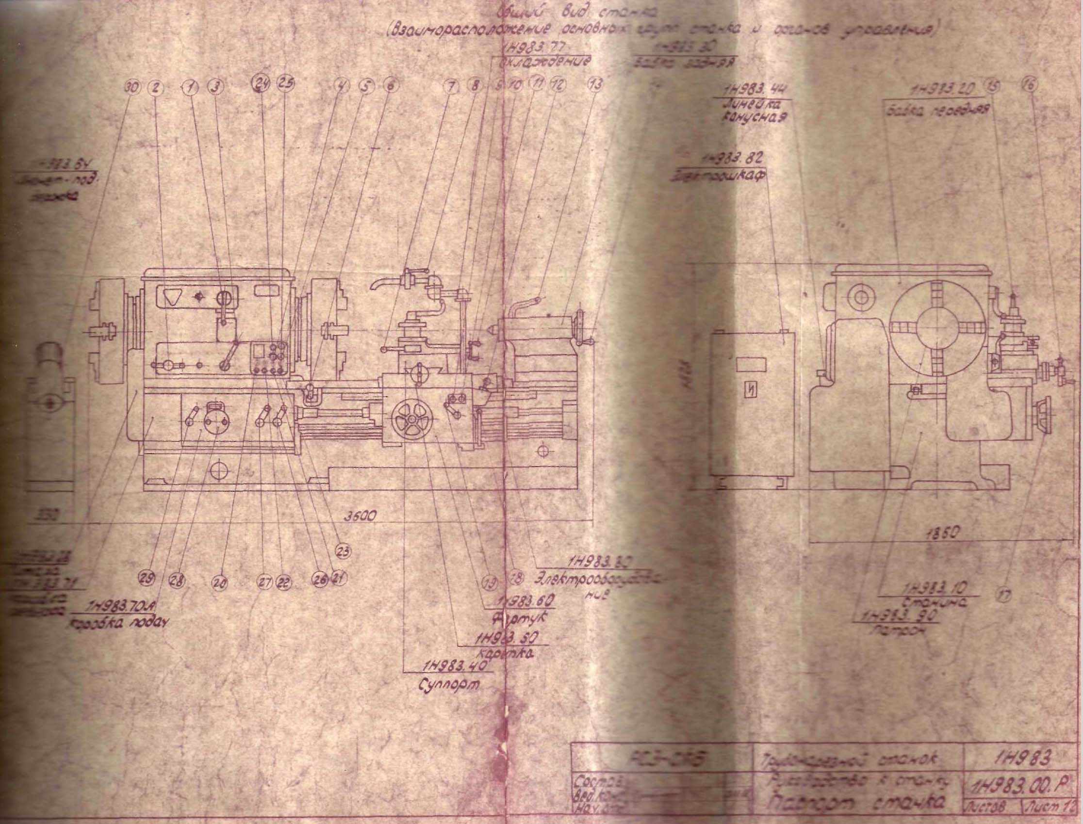 Розташування органів керування трубонарезным верстатом 1Н983. Дивитись у збільшеному масштабі