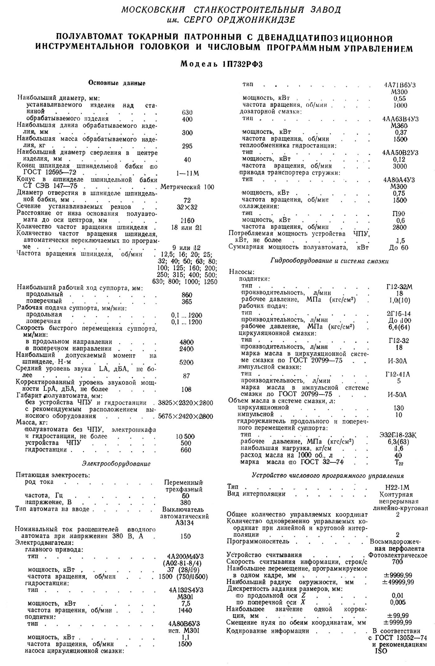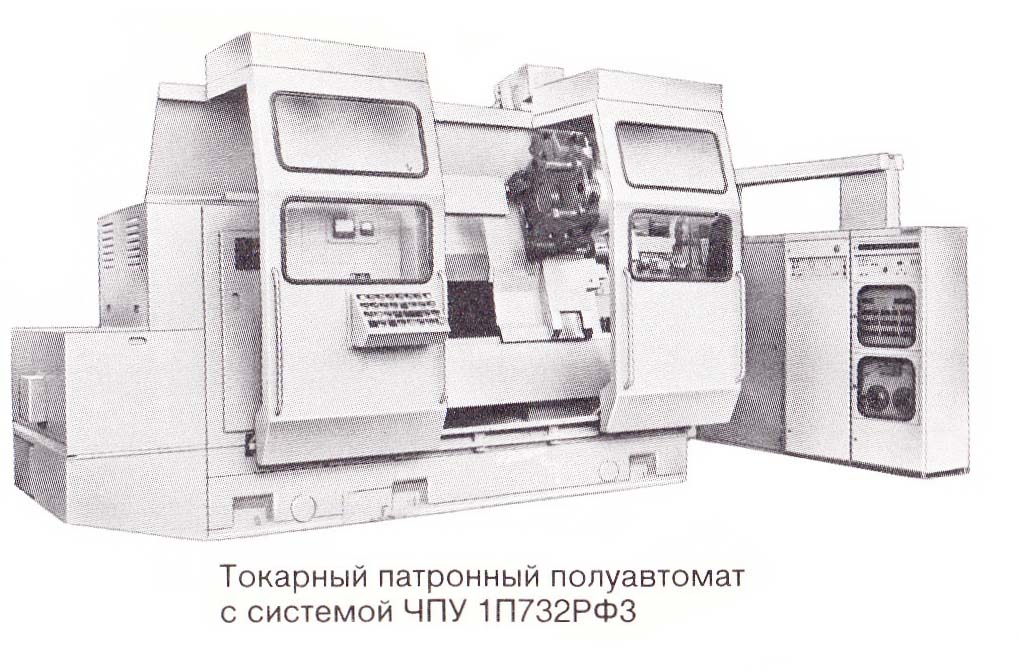 Гідрокопіювальний напівавтомат з цикловим програмним керуванням 1Б732 (1969 рік, на основі якого були спроектовані верстати з ЧПУ 1Б732Ф3 , 1П732Ф3 ) призначений для токарної обробки деталей у патроні або центрах деталей складної конфігурації: обточування циліндричних, конічних серій та сфер.
