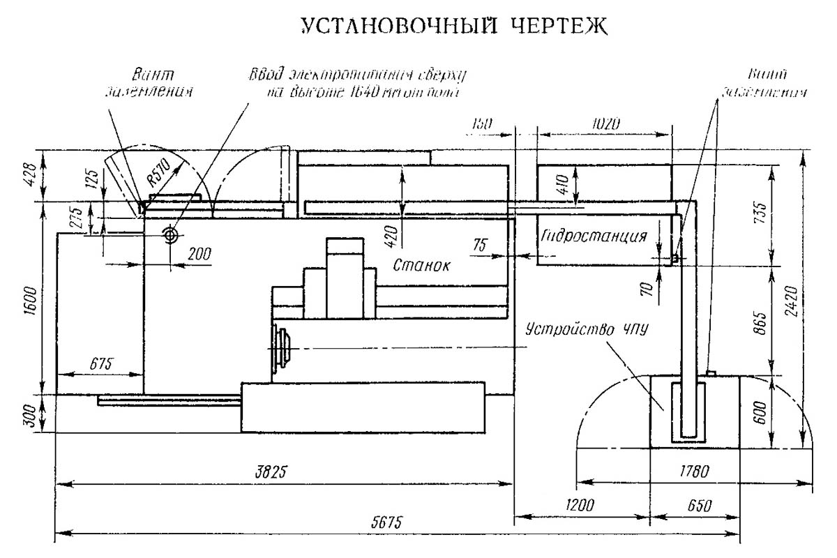 Настановне креслення токарного верстата з ЧПУ 1П732РФ3. Дивитись у збільшеному масштабі