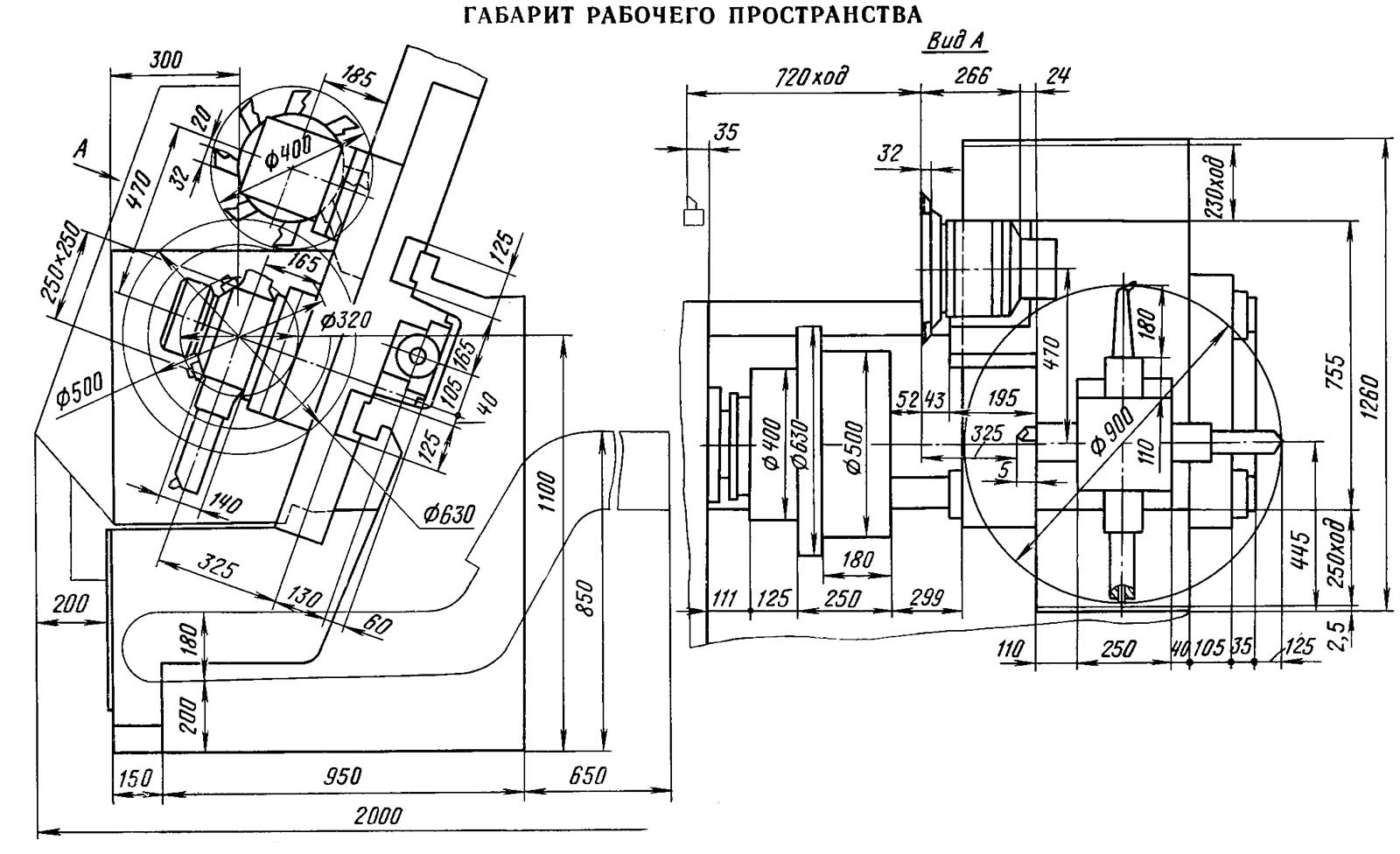 Креслення робочого простору токарного верстата 1П756ДФ321