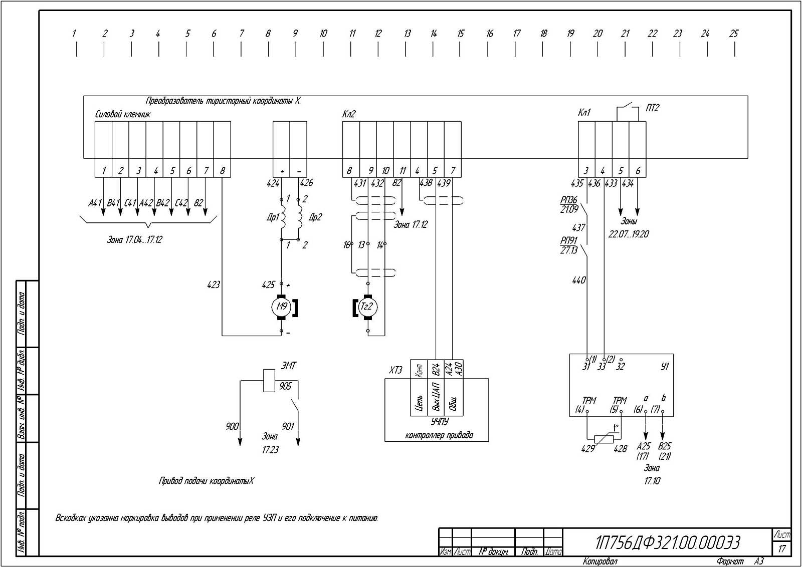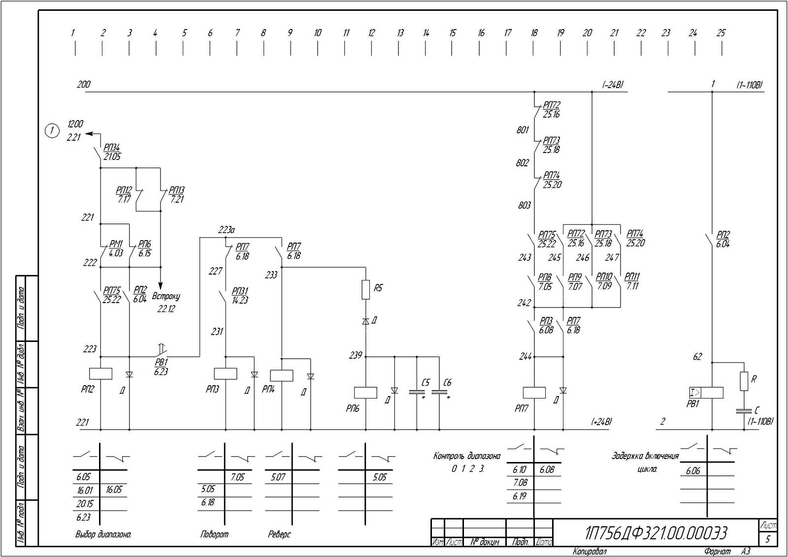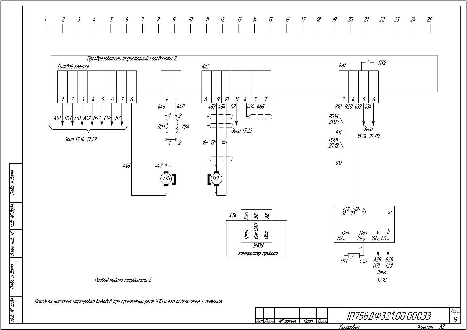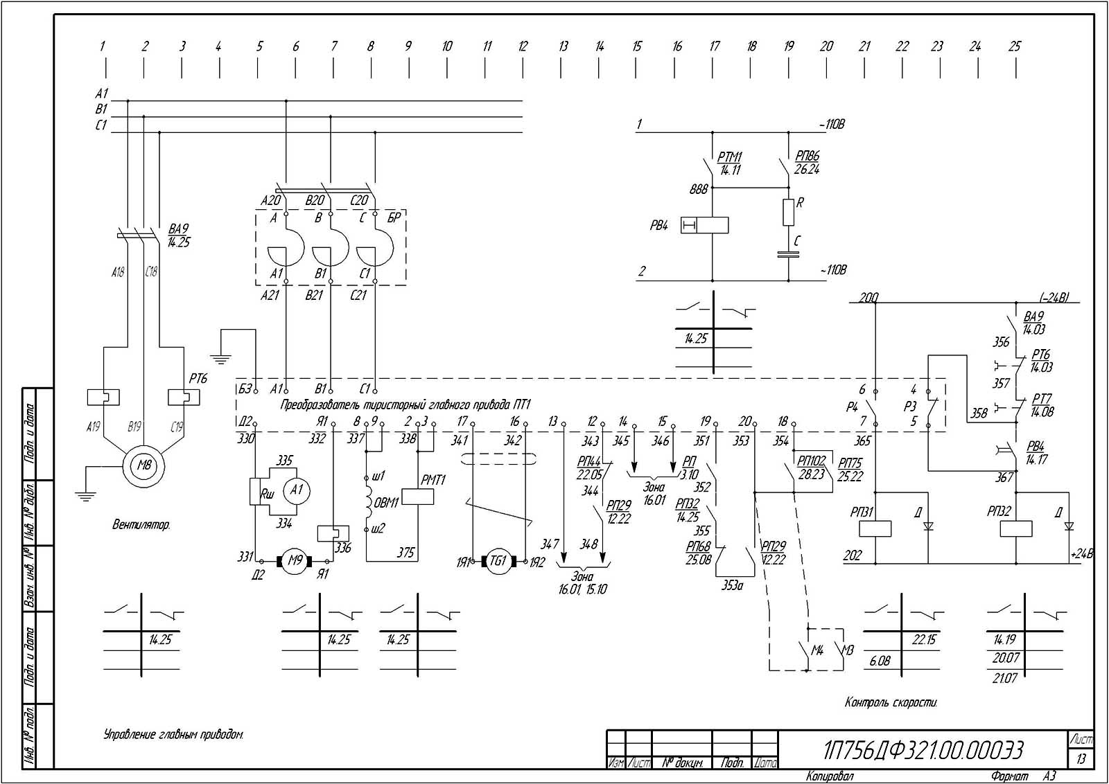 Електрична схема токарного верстата 1П756ДФ3. Дивитись у збільшеному масштабі