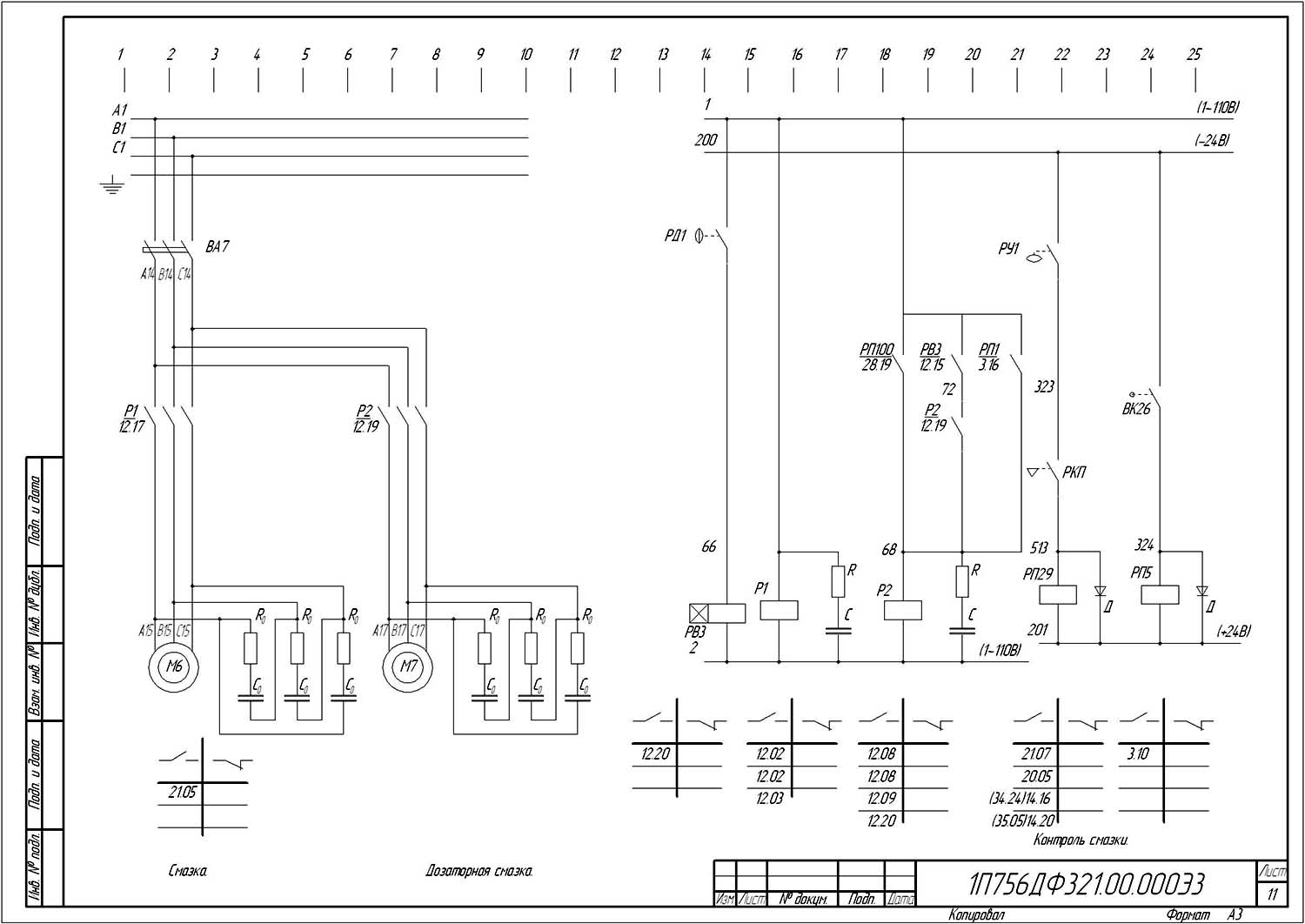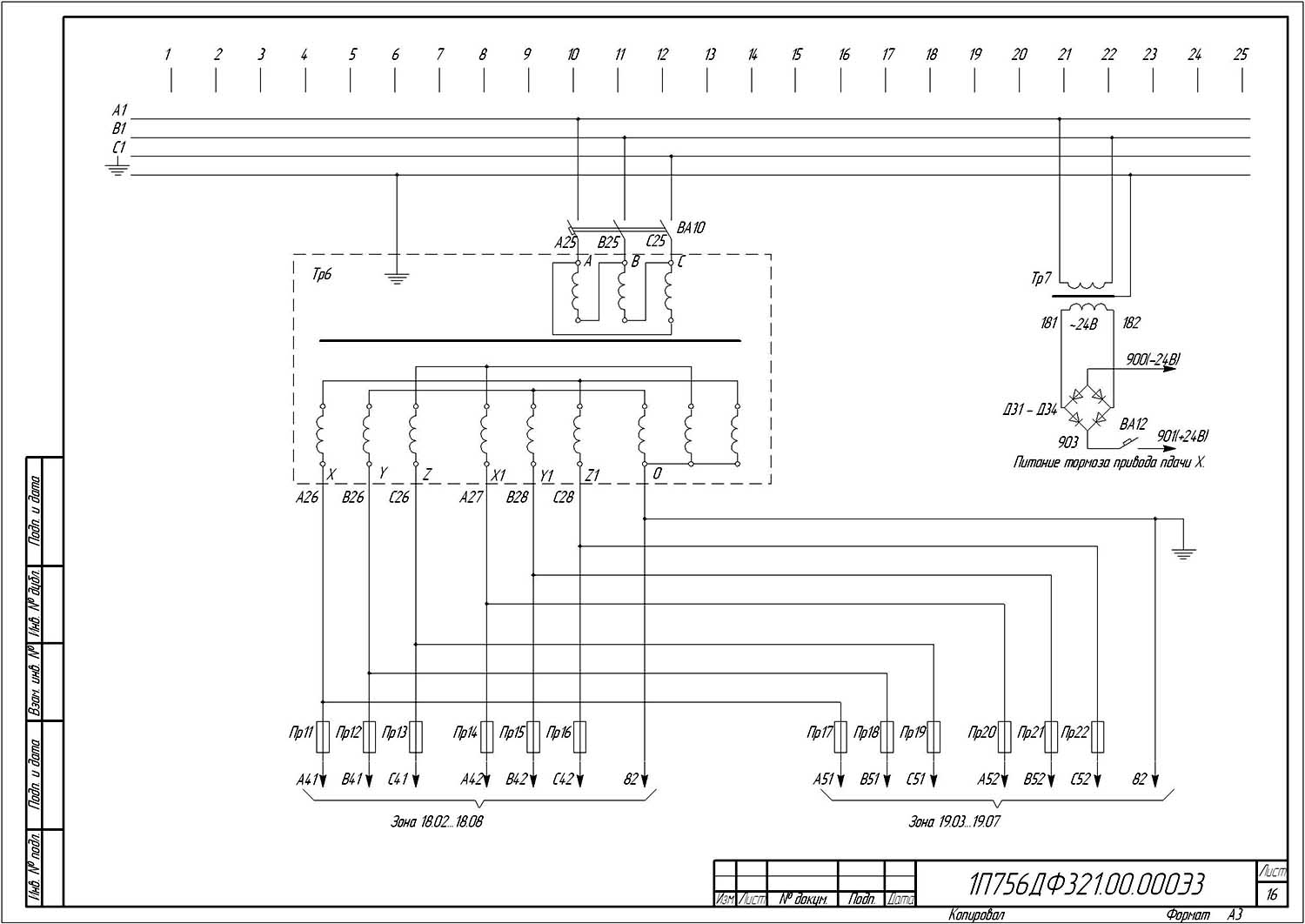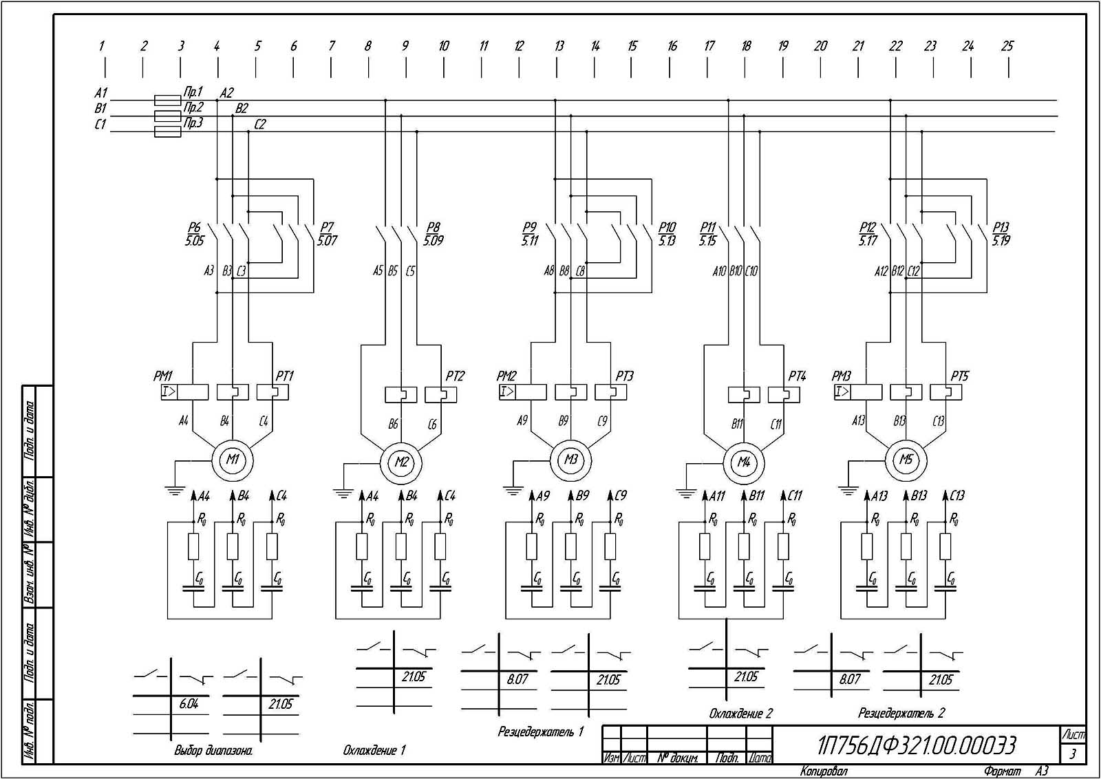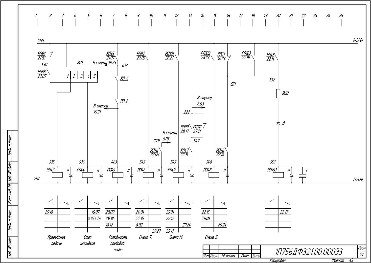 Електрична схема токарного верстата 1П756ДФ3. Дивитись у збільшеному масштабі