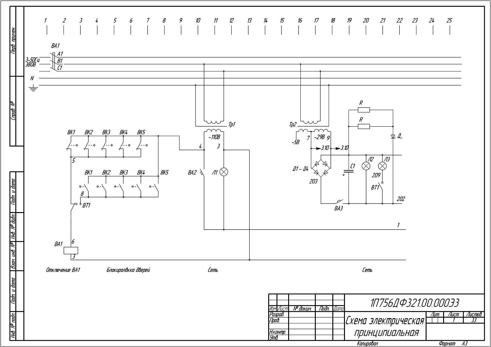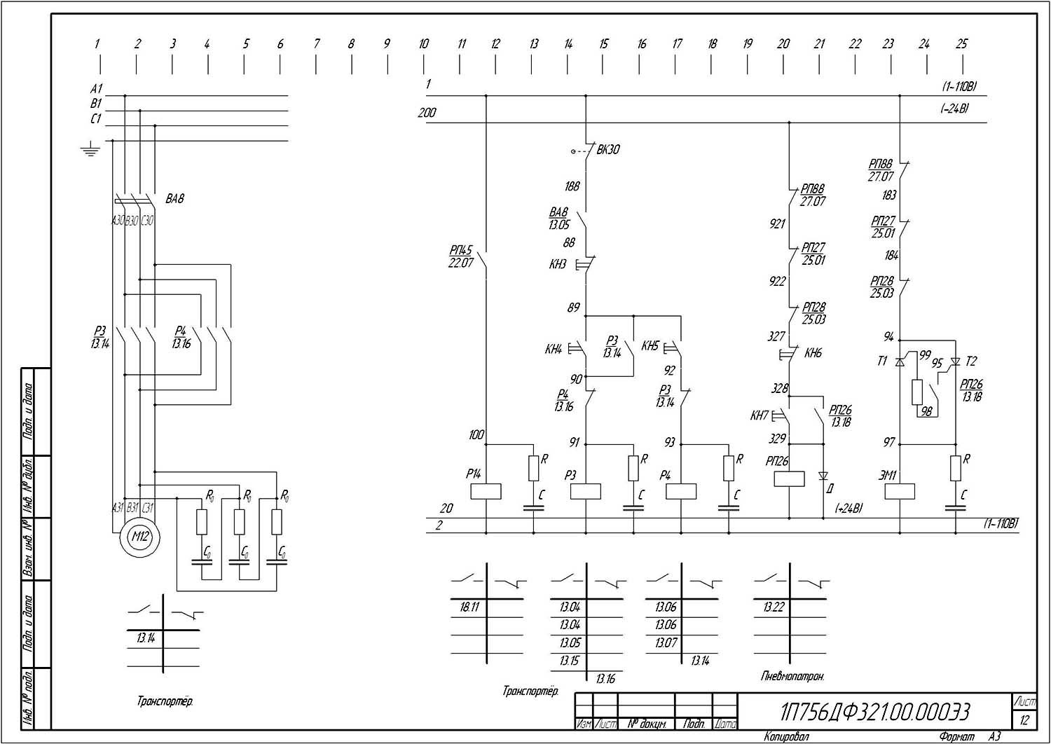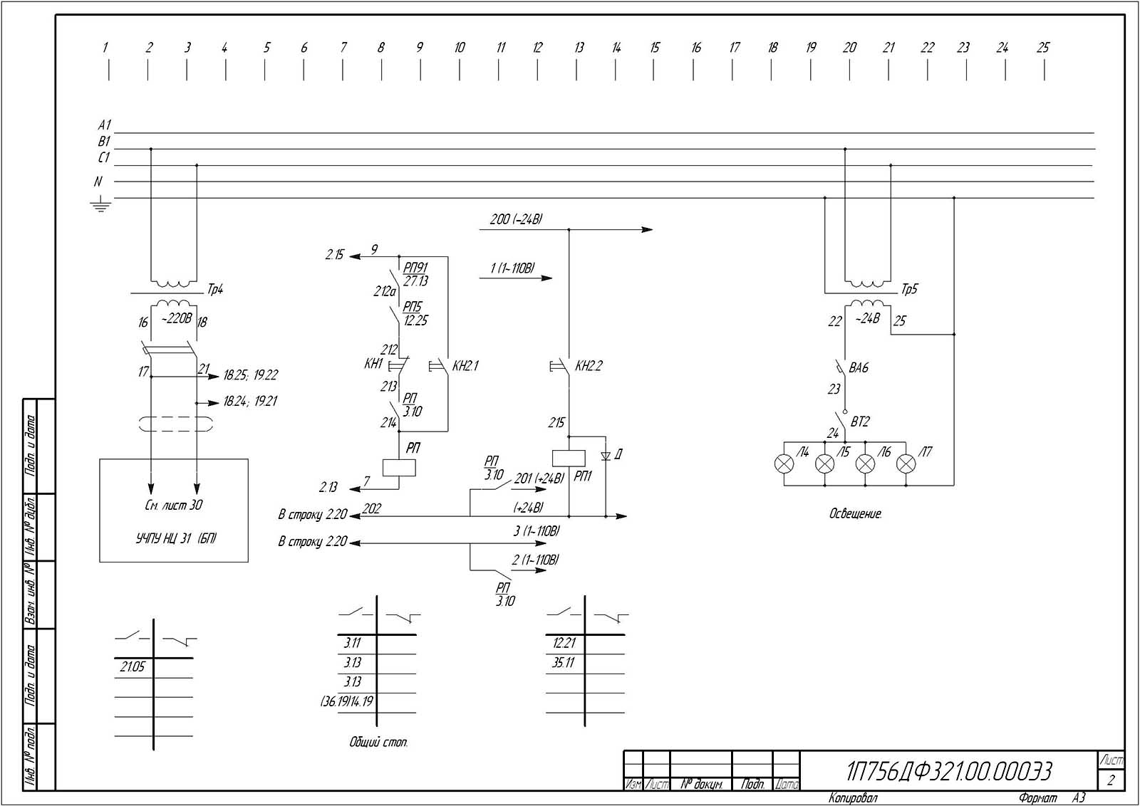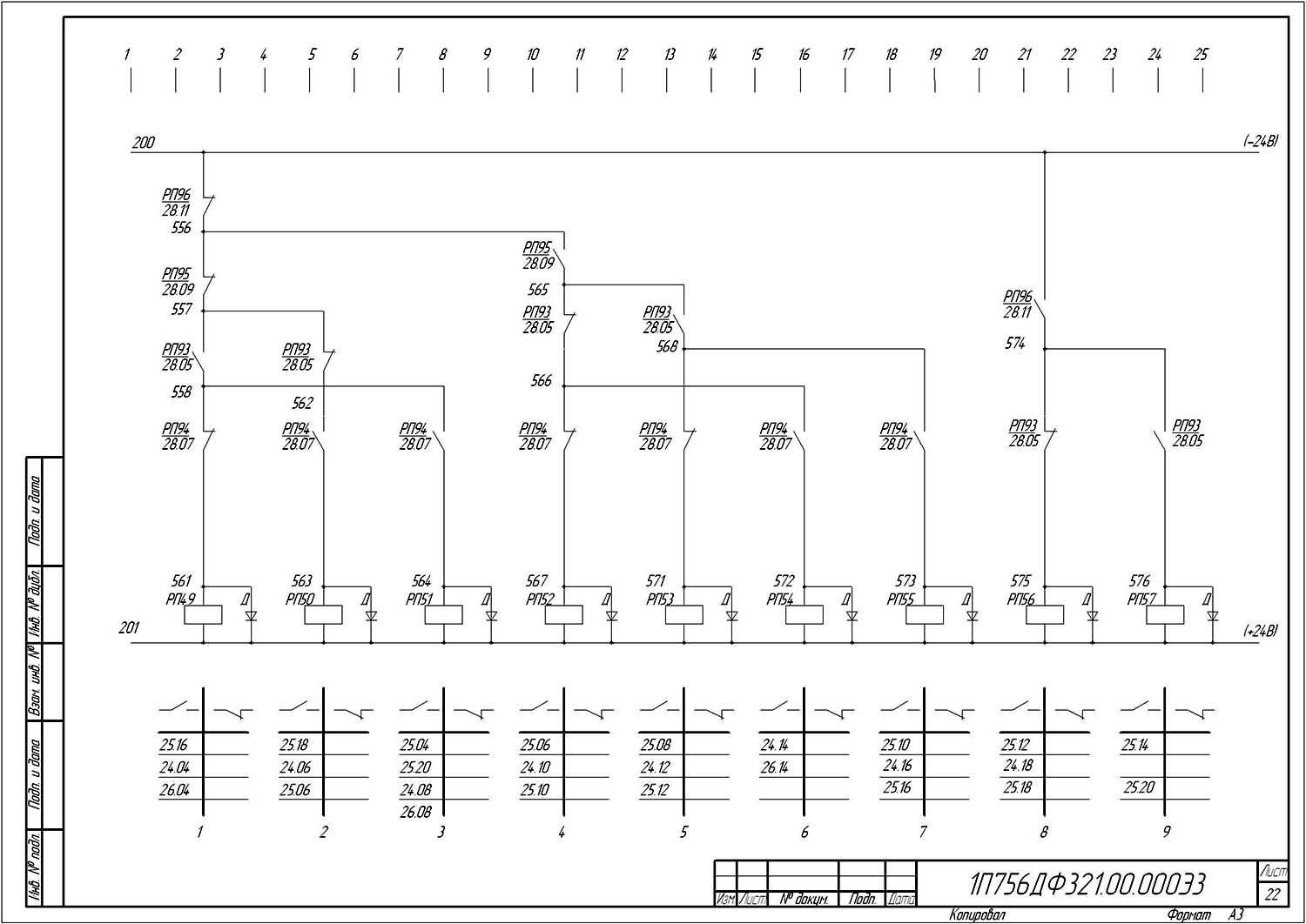 Електрична схема токарного верстата 1П756ДФ3. Дивитись у збільшеному масштабі