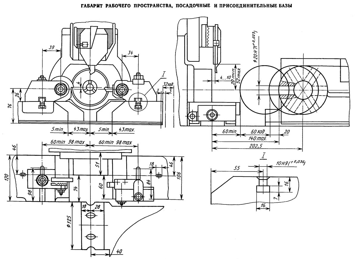 Установочне креслення токарного револьверного верстата 1В1 Дивитись у збільшеному масштабі