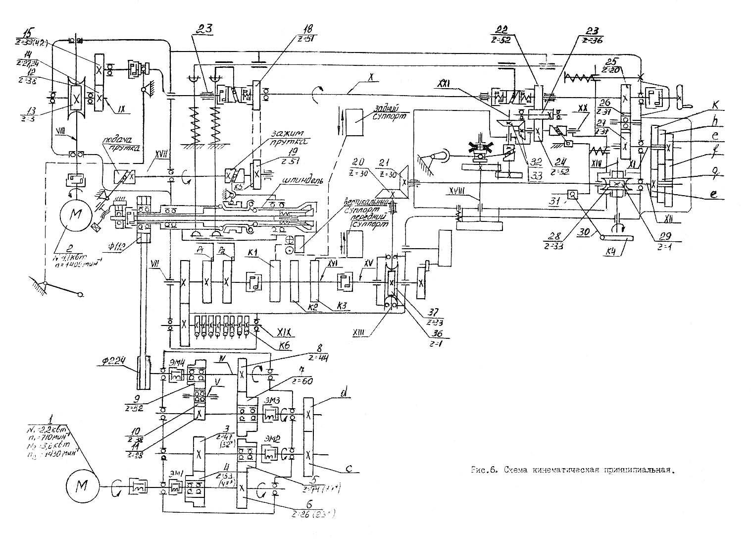Кінематична схема токарно-револьверного верстата1. Дивитись у збільшеному масштабі