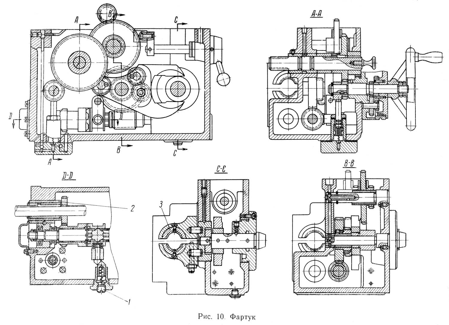 Фартук передает рух суппорту от ходового гвинта или ходового валика. Подачи суппорта при обтачивании осуществляются исключительно при помощи ходового валика ходовой винт применяется только при нарезании різьби.