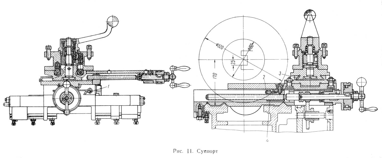 Суппорт токарно-гвинторізного верстата 1В61. Дивитись у збільшеному масштабі