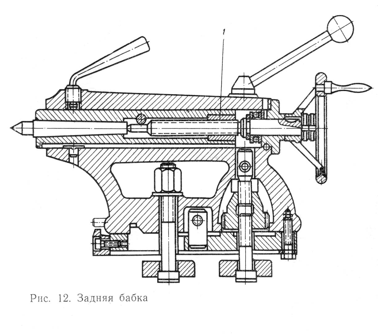 Задня бабка токарно-гвинторізного верстата 1В61. Дивитись у збільшеному масштабі