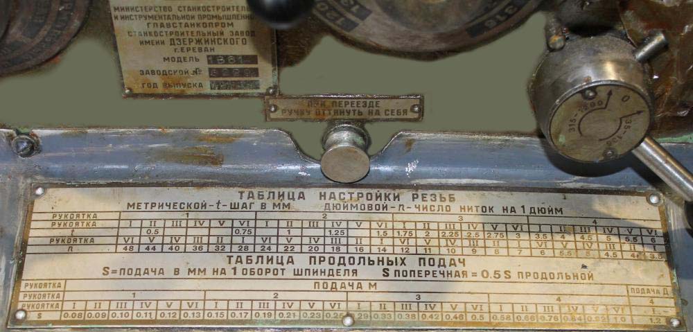 Для более точных різьб ходовой винт имеет прямое включение, без механізма ланцюги подач. Это достигается соответствующей наладкой шестерен гітари, поставляемых по особому заказу. Установка величины різьби осуществляется рукоятками У4 і У5. Установка типа різьби, увімкнення ходового гвинта или ходового валика производится при помощи рукоятки У6.