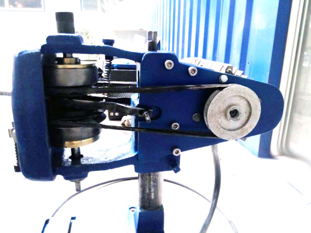 Від шківа електродвигуна через верхню гілок ременя обертання передається на верхній шків шпинделя, через нижню гілка ременя обертання передається на нижній шків шпинделя. Таким чином шківи обертаються в різних напрямках і є половинами відповідно верхньої і нижньої конусних муфт, жорстко закріплених на шпинделі. Шківи встановлені через підшипники кочення на втулку, що вільно переміщається в осьовому напрямку по шпинделю за допомогою рукоятки. При переміщенні ручки вниз включається нижня конусна муфта і шпиндель отримує обертання робочого ходу. Включення холостого ходу походить від пружини. Натяг клинового ременя здійснюється роликом.