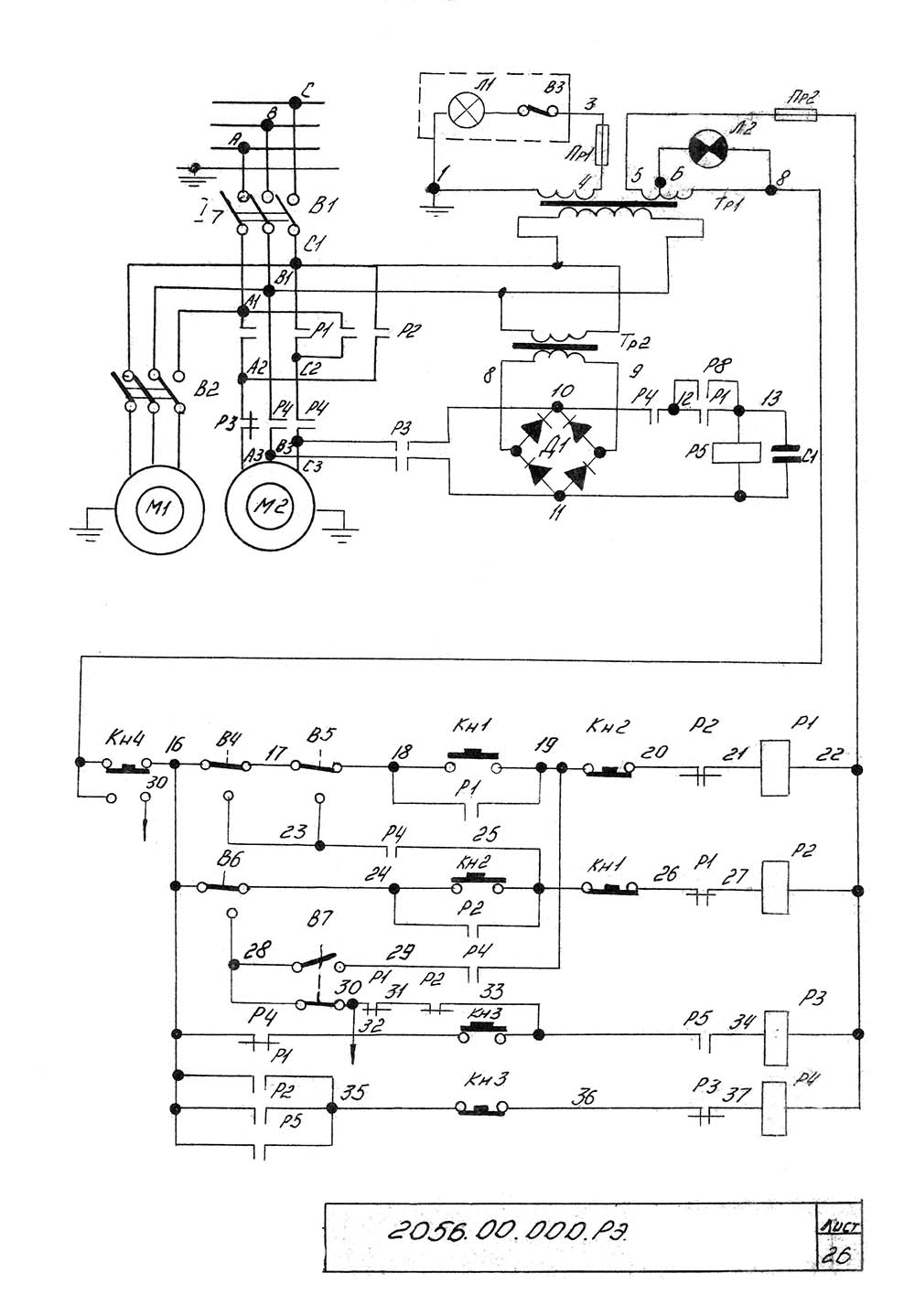 Електрична схема резьбонарезного верстата 2056. Скачать в увеличенном масштабе
