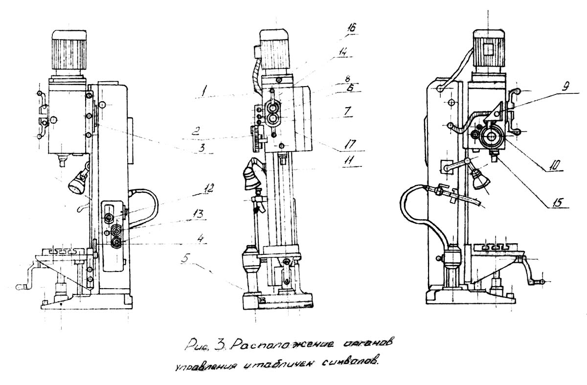 Работа верстата в одиночном режиме отличается от автоматичного только тем, что переключатель 8 ставят в положение «О» (на рисунке не показано), а електродвигатель після возврата шпинделя в крайнее верхнее положение і нажатия кулачка на микропереключатель отключается і тормозится.