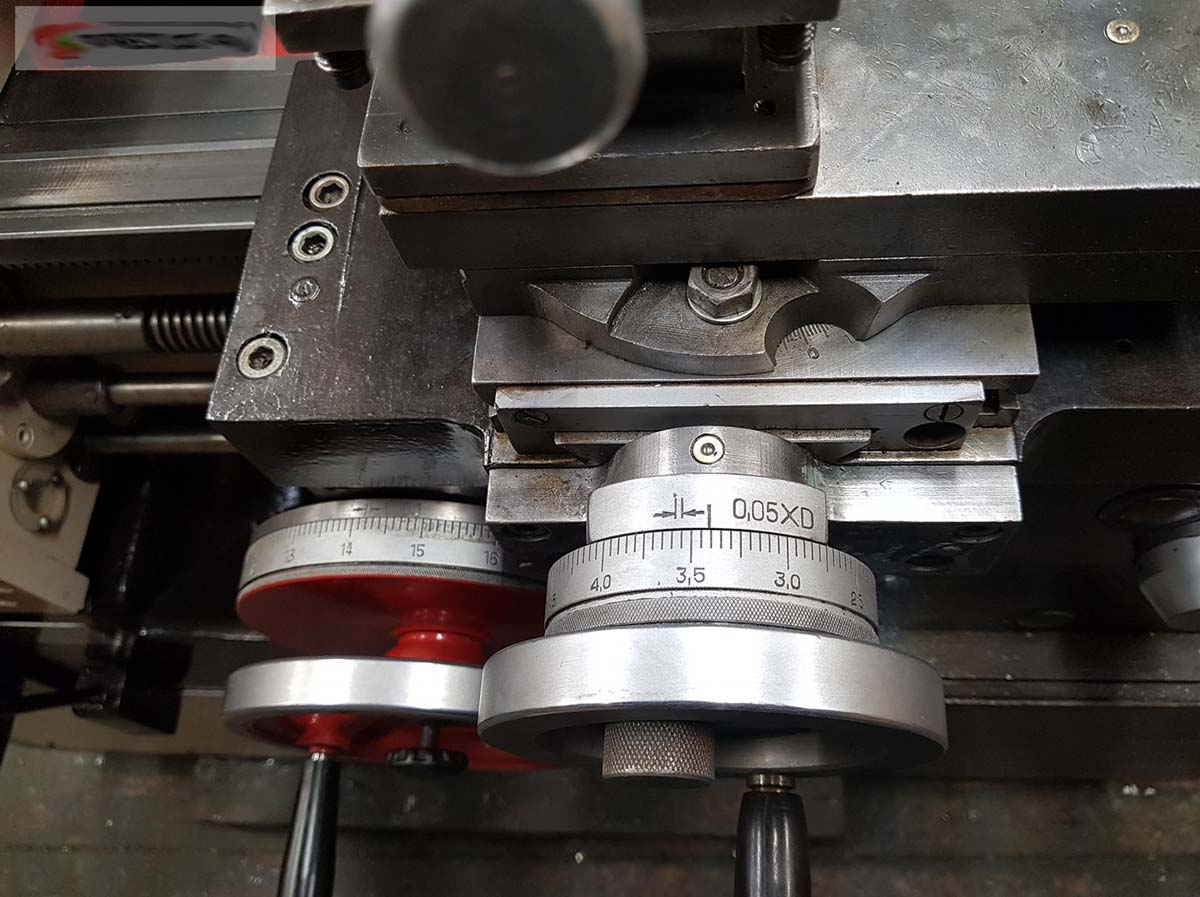 Для точного відліку поперечних переміщень передбачено механізм-верньєр, що дозволяє здійснювати переміщення 0,005 мм/об. Коробка подач забезпечує широкий діапазон величин різьби, подовжньої і поперечної подач. Для нарізування точного різьблення передбачено пряме з'єднання ходового ггвинта з гітарою, минаючи механізм коробки подач.