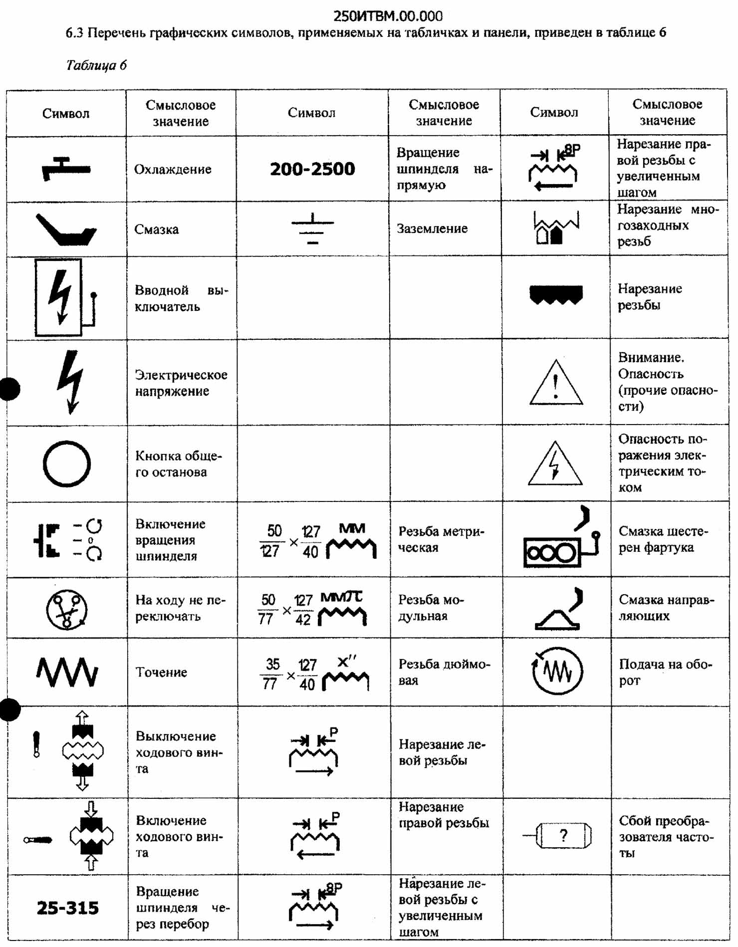 Список графических символів токарно-гвинторізного верстата 250ИТВМ. Скачать в увеличенном масштабе