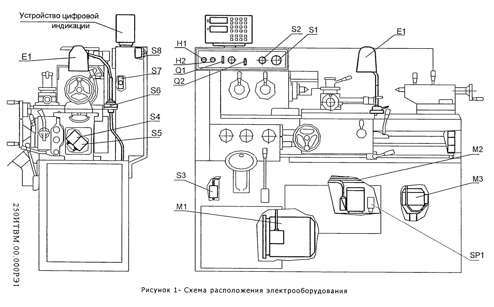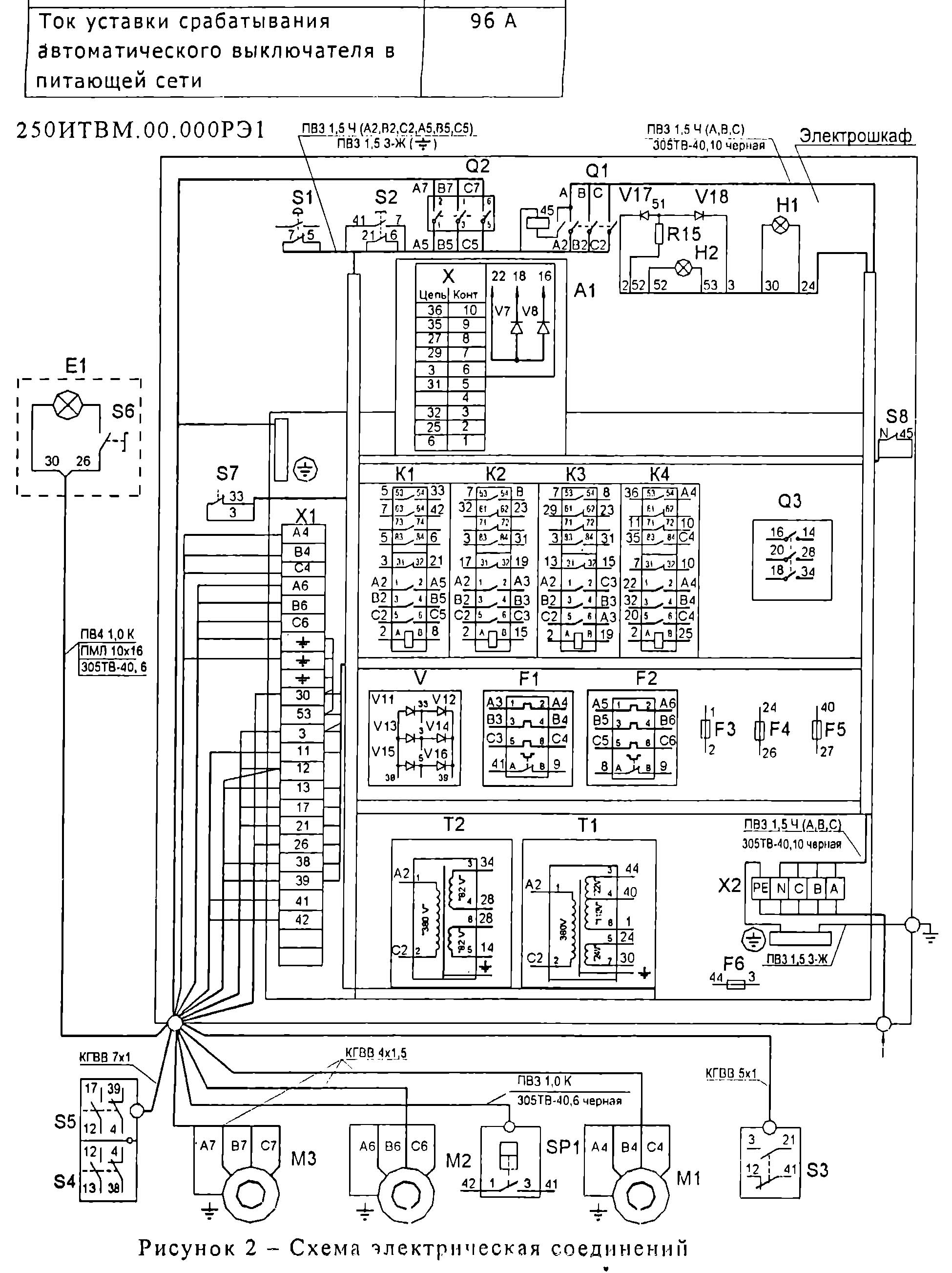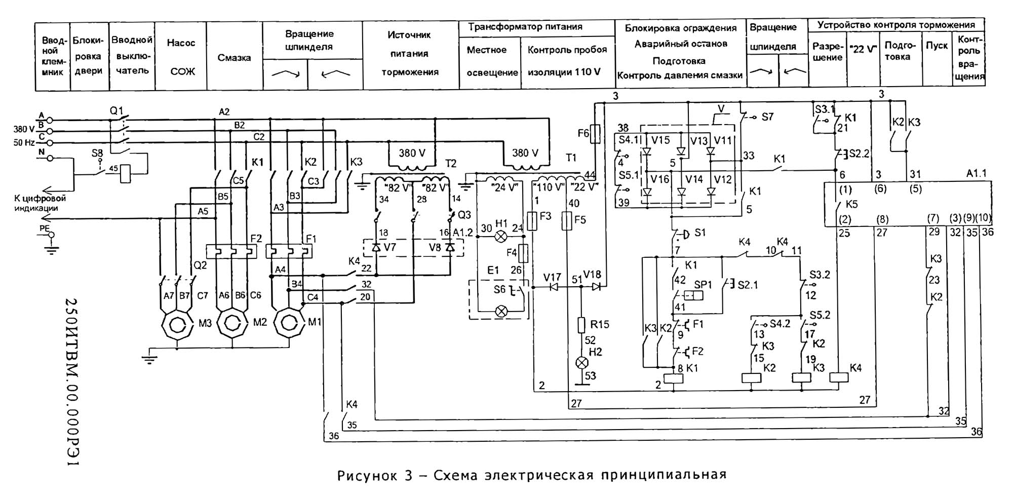 Работа електроустаткування верстатів моделей 250ИТВМ.01, 250ИТВМ.03, 250ИТВМФ1 определяется електрической принципиальной схемой 250ИТВМ.90.000ЭЗ в соответствии з рисунком 3 і перечнем елементів 250ИТВМ.90.000ПЭЗ в соответствии з таблицей 3.