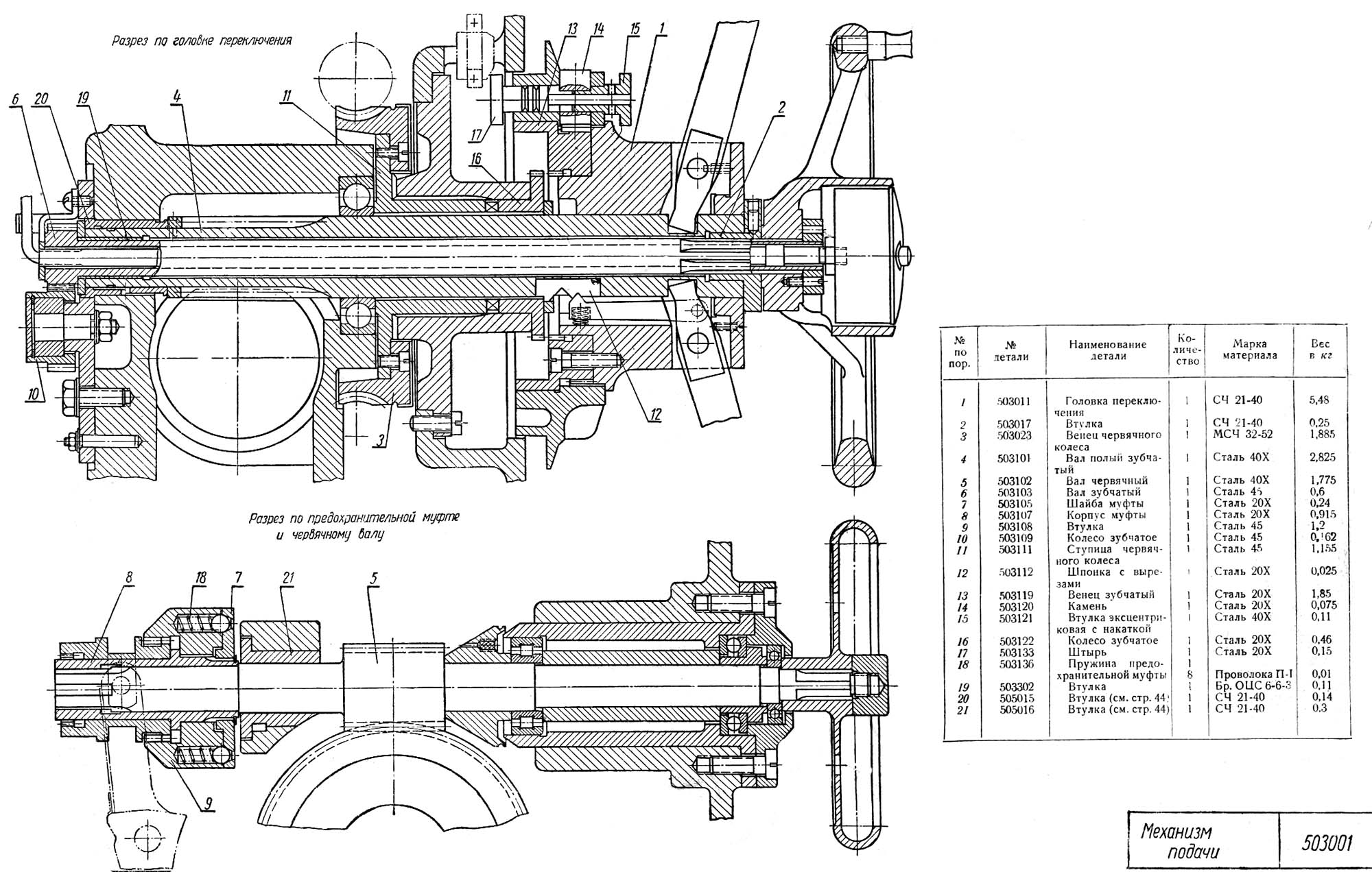 Механізм подач радиально-сверлильного верстата 255. Дивитись у збільшеному масштабі