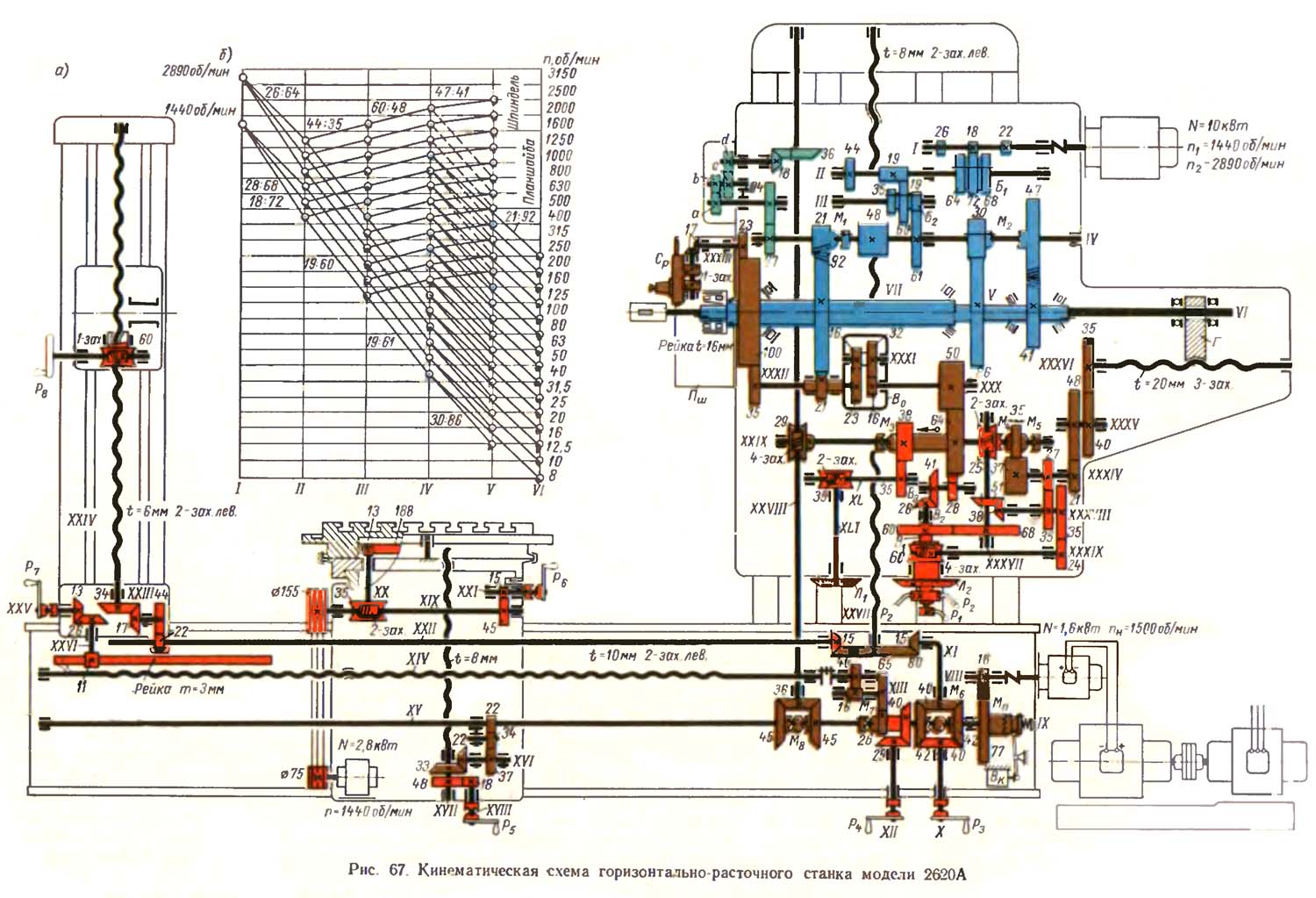 3. Кінематична схема горизонтально-расточного верстата 2620а. Дивитись у збільшеному масштабі