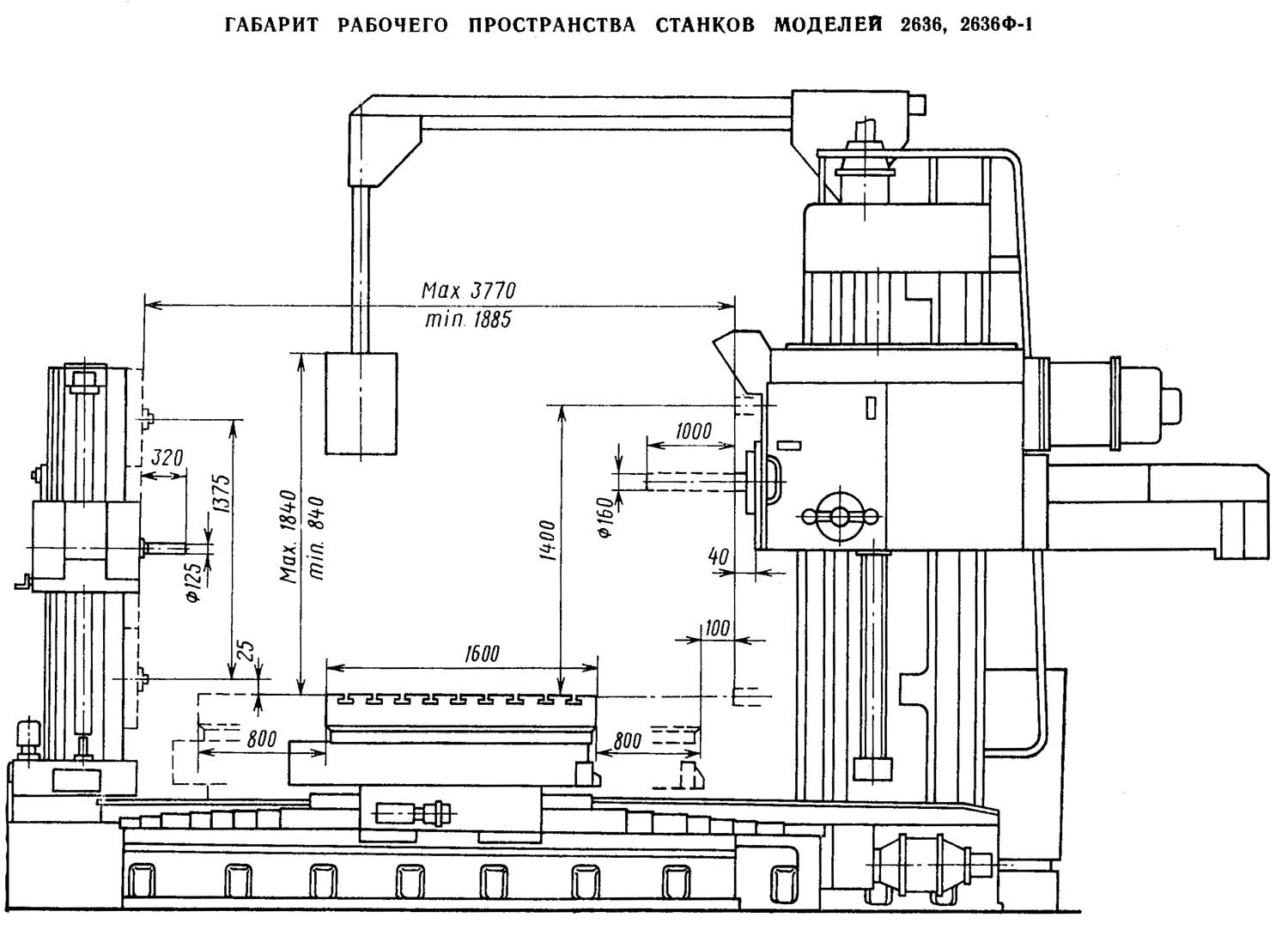 Настановне креслення горизонтально-расточного верстата 2636. Скачать в увеличенном масштабе